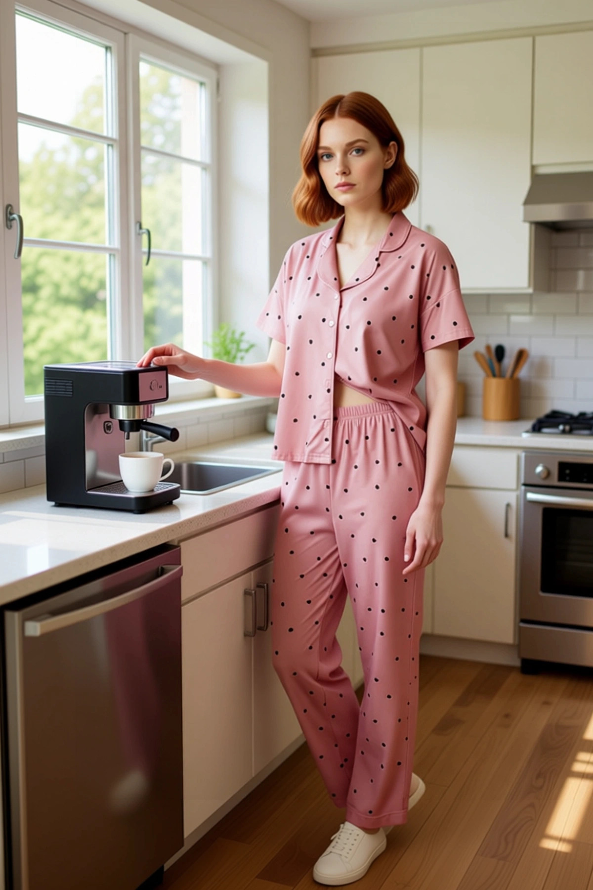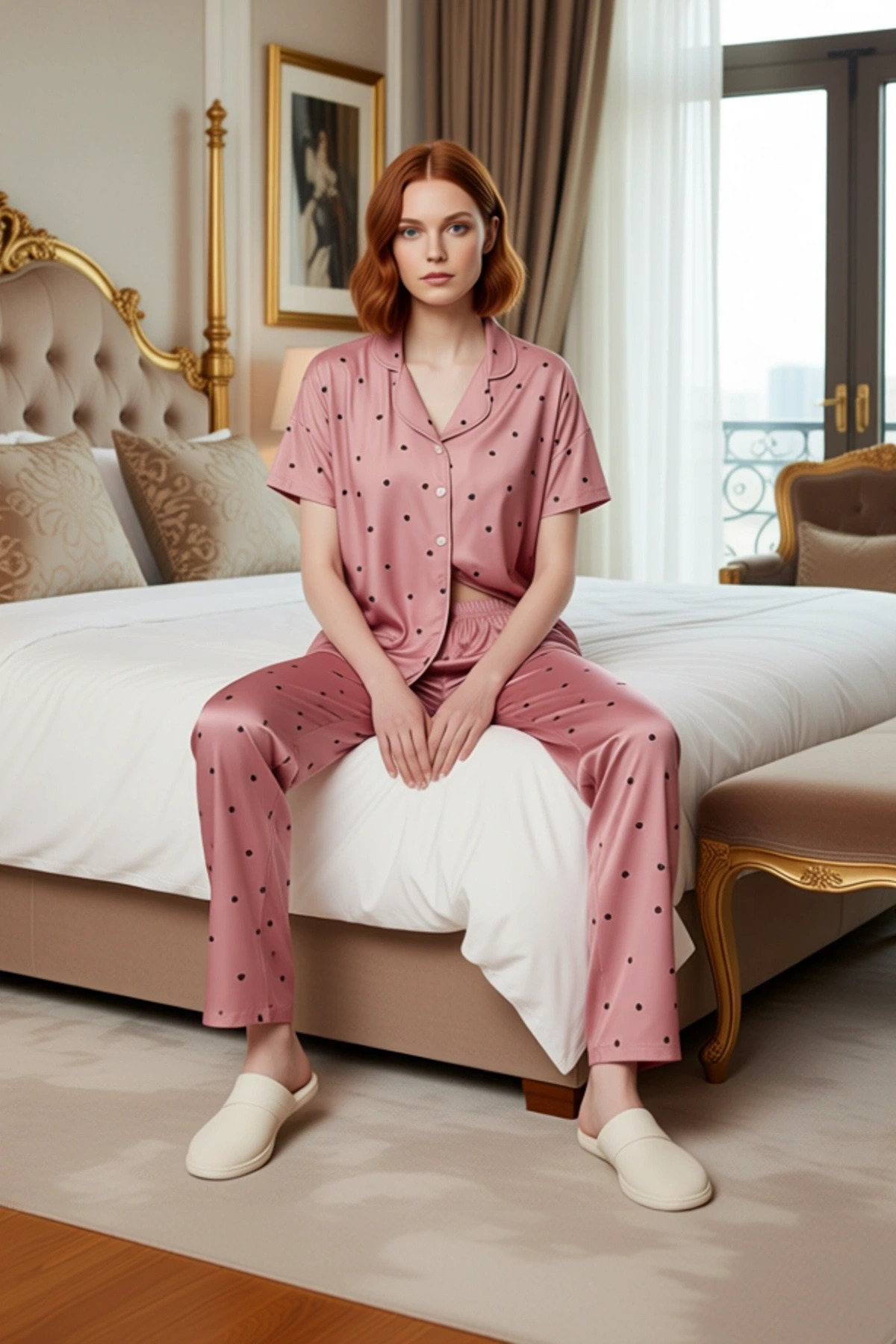 Evdeki stilinizi ve konforunuzu bir üst seviyeye taşıyacak bu kadın pijama takımı, %90 polyester ve %10 elastan karışımı örme kumaştan üretilmiştir. Bu özel materyal, cildinize nazikçe dokunurken aynı zamanda gün boyu süren bir rahatlık sunar. Pembe rengin üzerine zarifçe yerleştirilmiş siyah kalp desenleri, takıma feminen ve eğlenceli bir dokunuş katmaktadır. Düz ve basic kesimiyle her vücut tipine uyum sağlayan bu takım, regular kalıbı sayesinde hareketlerinizi kısıtlamadan rahatlık sunar. Metraj baskı tekniğiyle canlılığını koruyan desenler, uzun ömürlü bir kullanım vaat eder. Süprem dokuma tipi, kumaşın yumuşaklığını ve dayanıklılığını artırır, bu da onu evde geçirdiğiniz her an için ideal kılar. Bu şık pijama takımının gömlek kısmında bulunan yaka detayı, klasik bir görünüm sağlarken, kısa kolları sıcak günlerde ferahlık sunar. Pantolonun boru paça kesimi ve normal bel özelliği, rahat bir oturuş ve kullanım kolaylığı sunar. Elastan içeriği, kumaşa esneklik kazandırarak uyku sırasında veya evdeki diğer aktivitelerde maksimum hareket özgürlüğü sağlar. Bu ürün, cool ve konforlu bir yaşam tarzını benimseyen kadınlar için lounge ve ev ortamlarında kullanıma uygundur. Yumuşak dokusu ve şık tasarımıyla bu pijama takımı, ev giyimi koleksiyonunuzun sevilen bir parçası olacaktır. Bu pijama takımı, her mevsimde rahatlıkla kullanılabilir. Özellikle ilkbahar ve yaz aylarında hafifliğiyle serinlik sağlarken, sonbahar ve kış aylarında da evde keyifli vakit geçirirken tercih edilebilir. Bu takımı, rahat bir eşofman altı veya yumuşak bir şort ile tamamlayarak ev içinde farklı kombinler oluşturabilirsiniz. Ayakkabı olarak ise peluş terlikler veya evde kullanıma uygun hafif spor ayakkabılar tercih edilebilir. Takımın uzun ömürlü olması için, renklerin solmaması adına düşük sıcaklıkta ve benzer renklerle birlikte yıkanması tavsiye edilir. Bu pijama takımı, hem kendiniz için bir zevk hem de sevdikleriniz için düşünceli bir hediye olacaktır.