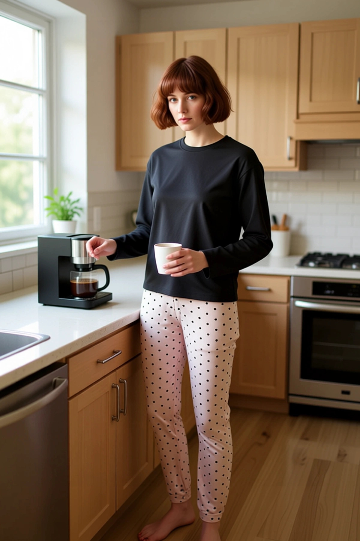 Kadınların evdeki rahatlığı ve stilini ön planda tutan bu pijama takımı, şık tasarımıyla göz dolduruyor. Siyah renkteki bisiklet yaka üst, uzun kollu ve sade bir kesime sahip. Alt kısım ise krem rengi zemin üzerine zarifçe yerleştirilmiş siyah kalplerle bezeli. Bu desen, takıma hem romantik hem de eğlenceli bir dokunuş katıyor. %100 polyesterden üretilen bu takım, yumuşak tuşesi ile cildinize nazikçe dokunarak gün boyu süren bir konfor sağlıyor. Metraj baskı tekniği kullanılarak elde edilen kalp deseni, renklerin canlılığını ve desenin netliğini uzun süre koruyor. Regular kalıbı ve 30/1 süprem kumaş dokusu, hem hareket kabiliyetini kısıtlamayan hem de vücuda hoş bir şekilde oturan bir yapı sunuyor. Bu pijama takımı, evde geçirilen zamanı daha keyifli ve stil sahibi kılmak için özenle tasarlandı. Üst kısmın bisiklet yaka detayı, boyun bölgesinde rahat bir his bırakırken, uzun kolları soğuk günlerde sıcaklık sağlıyor. Pantolonun boru paça kesimi ve normal bel detayı, gün boyu rahat bir kullanım sunuyor. %100 polyester kumaşın hafifliği, hareket özgürlüğünü artırırken, yumuşak dokusu cildinize ekstra bir konfor katıyor. Bu pijama takımı, lounge ve ev ortamları için özel olarak geliştirilmiş olup, cool ve konforlu bir görünüm sunuyor. Günlük kullanım için ideal olan bu ürün, evde dinlenirken veya ev işleriyle uğraşırken size eşlik edecek. Kış mevsiminin soğuk günlerinde içinizi ısıtacak bu pijama takımı, evde şıklığından ödün vermek istemeyen kadınlar için harika bir seçenek. Siyah üst ve desenli alt kısım, zamansız bir uyum sergiliyor. Bu takımı, rahat bir tayt, yumuşak bir ev ayakkabısı ve üzerine alabileceğiniz salaş bir sweatshirt ile tamamlayabilirsiniz. Ayrıca, hafta sonu evde keyifli vakit geçirirken, jean şort ve sandaletlerle de kombinleyebilirsiniz. Bakımı oldukça pratiktir; düşük sıcaklıkta makinede yıkanabilir.