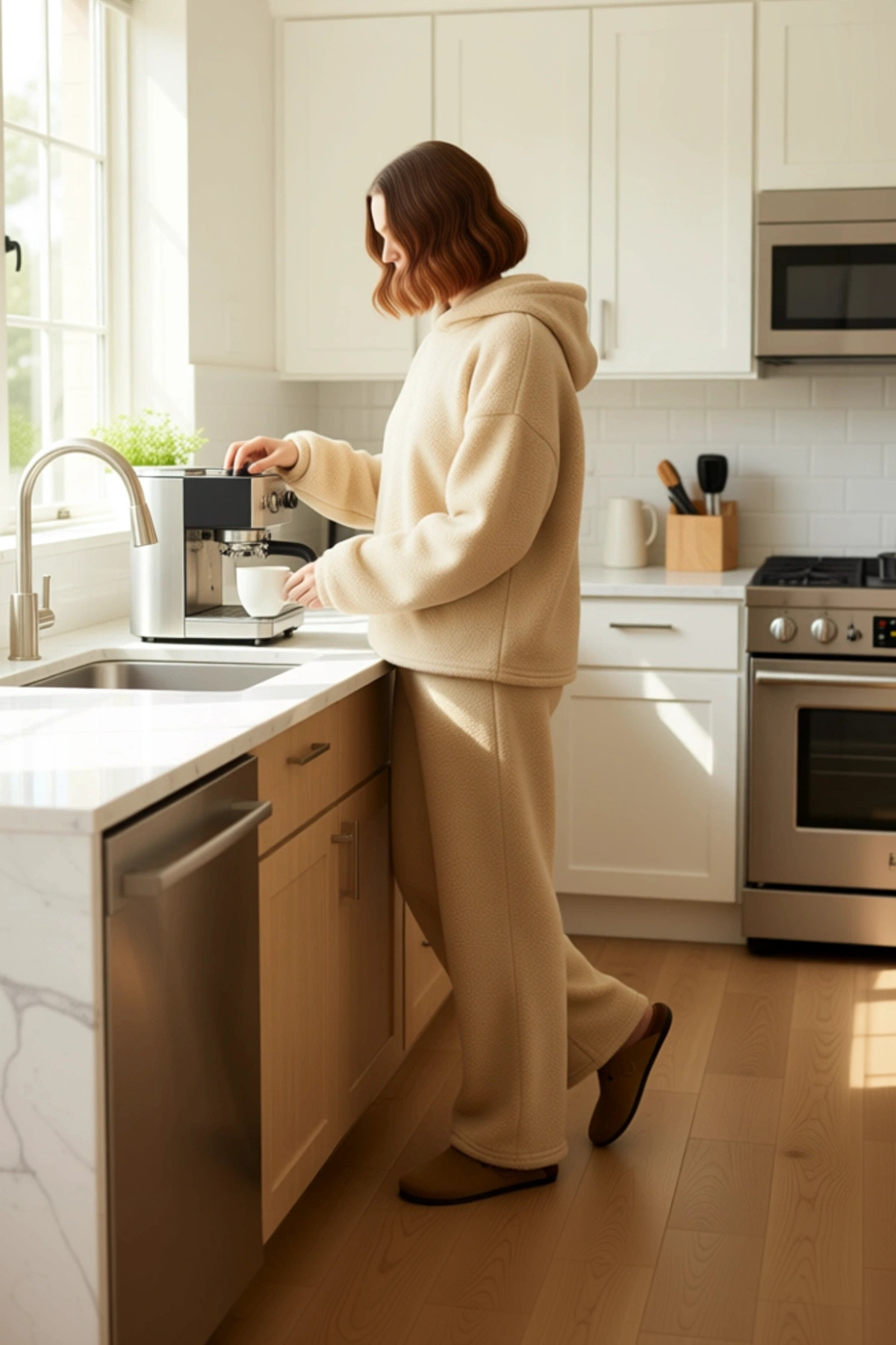 Bu kadın pijama takımı, evde geçirdiğiniz zamanlara sıcaklık ve stil katmak için özel olarak tasarlandı. Bej rengi ve peluş dokusu ile dikkat çeken bu takım, rahatlığı ön planda tutuyor. Üst kısımda bulunan kapüşon detayı ve uzun kolları, soğuk kış günlerinde sizi sıcacık tutacak. Pantolonun boru paça kesimi, modern bir görünüm sunarken, regular kalıp sayesinde gün boyu konfor sağlıyor. %100 polyester materyali, ürünün yumuşaklığını ve dayanıklılığını artırıyor. Bu pijama takımı, ev giyiminde cool ve comfort bir duruş sergilemek isteyenler için ideal. Lounge ve ev ortamı için tasarlanan bu ürün, kış koleksiyonunun en sevilen parçalarından biri olmaya aday. Üzerindeki zarif nakışlar, takıma özgün bir karakter kazandırıyor. Takımın kapüşonlu yaka tasarımı, hem ekstra bir sıcaklık katmanı sunuyor hem de ürüne sevimli bir dokunuş ekliyor. Standart kesim uzun kolları, hareket özgürlüğünüzü kısıtlamadan rahat bir kullanım vadediyor. Regular kalıp, vücuda nazikçe oturarak gün boyu konfor sağlıyor. Pantolonun normal bel ve boru paça kesimi, hem şık hem de rahat bir silüet oluşturuyor. Peluş kumaşın eşsiz yumuşaklığı, cildinize nazikçe dokunarak maksimum rahatlık sunuyor. Bu pijama takımı, evde dinlenirken, kitap okurken veya film izlerken size eşlik edecek. İki parçadan oluşan bu takım, dayanıklı yapısıyla uzun süreli kullanım için ideal. Solid teknikle üretilmiş olması, kalitesini ve formunu korumasını sağlıyor. Bu pijama takımı, özellikle kış aylarında tercih edilmesi gereken bir üründür. Peluş kumaşın sunduğu sıcaklık, sizi soğuktan koruyacaktır. Bu takımı, rahat bir ev terliği veya kalın çoraplarla tamamlayabilirsiniz. Evde keyifli vakit geçirirken bu takımı tercih edebilirsiniz. Bej rengi, her türlü ev dekorasyonu ile uyum sağlayacaktır. Bakımı oldukça basittir; nazikçe elde veya makinede yıkanabilir, böylece ürünün ömrünü uzatabilirsiniz. Bu pijama takımı, kendiniz için bir zevk veya sevdikleriniz için düşünceli bir hediye olarak düşünülebilir.