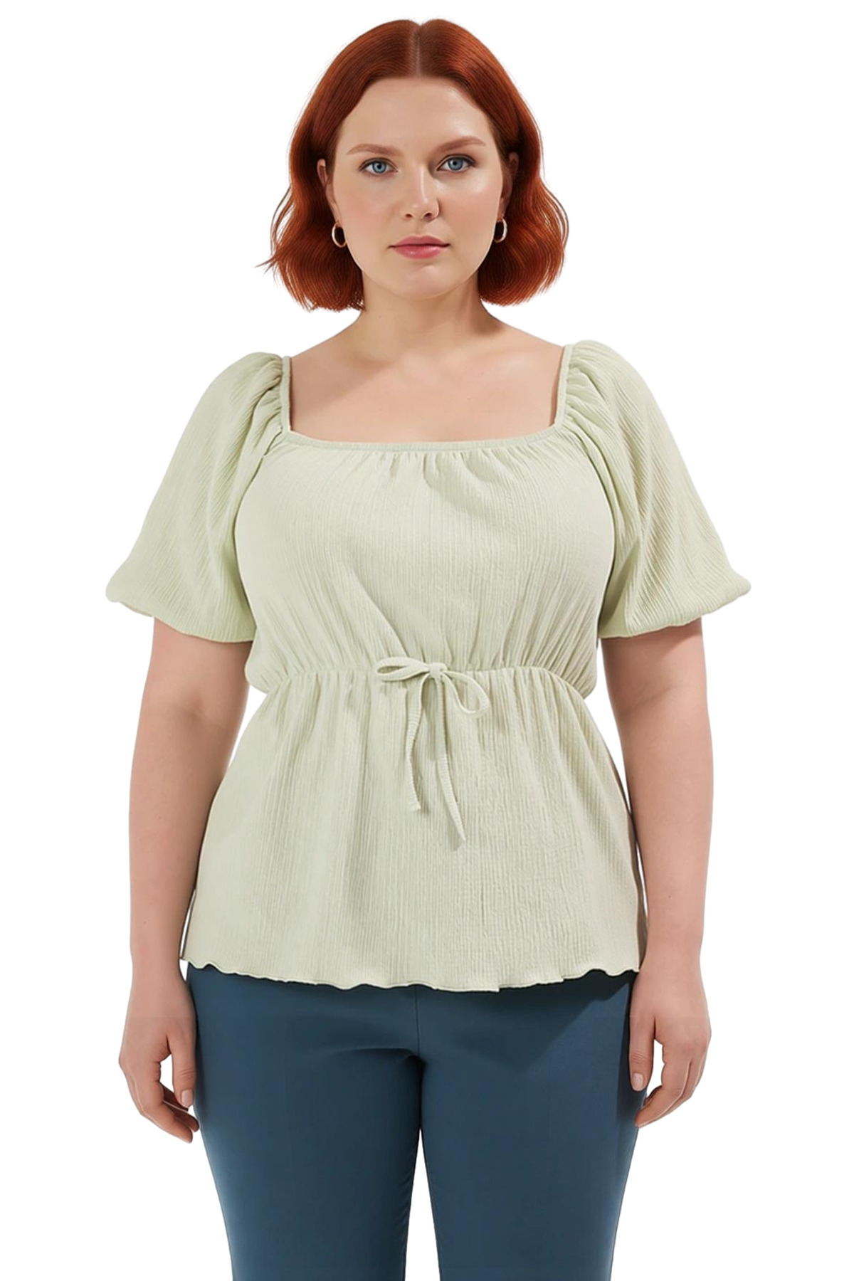 Bu bluz, modern ve şık bir görünüm arayan kadınlar için tasarlandı. Kare yaka kesimi, zarif bir dekolte sunarken, balon kolları ise tasarıma dinamik bir dokunuş katıyor. Örme kumaşın sunduğu yumuşaklık ve esneklik, gün boyu rahat bir kullanım sağlıyor. Ürünün bürümcük dokusu, ona benzersiz bir dokusal derinlik kazandırıyor. Regular kalıbı, vücuda tam oturan ancak sıkmayan bir yapı sunarak konforu ön planda tutuyor. Kısa kol boyu, özellikle bahar ve yaz aylarında serin ve ferah bir his veriyor. Bel kısmındaki büzgü ve ip detayı, bluzun formunu kişiselleştirmenize olanak tanıyor, böylece istediğiniz silüeti kolayca elde edebilirsiniz. Bu özellikler, bluzun hem gündelik kullanıma uygunluğunu hem de şık bir görünüm sunmasını sağlıyor. %99 polyester ve %1 elastan karışımı, kumaşın hem dayanıklı hem de esnek olmasını sağlıyor, bu da ürünün uzun ömürlü olmasını garanti ediyor. Casual ve günlük kullanım için ideal olan bu bluz, kot pantolonlar, keten pantolonlar veya eteklerle kolayca kombinlenebilir. Türkiye’de üretilen bu ürün, kalite ve zarafeti bir araya getiriyor. Hassas Yıkama yıkama talimatlarına uyarak bluzunuzu kolayca temizleyebilir ve bakımını yapabilirsiniz. Bu bluz, her kadının gardırobunda olması gereken, hem rahat hem de stil sahibi bir parça olarak öne çıkıyor. Günlük şıklığınızı tamamlayacak bu bluz, stilinize zarif bir dokunuş katacaktır.