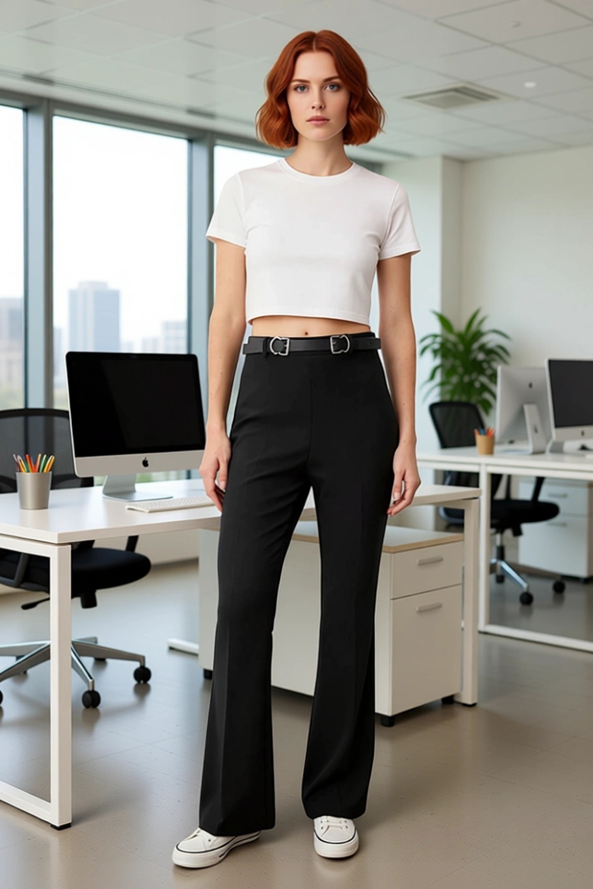 Bu kadın pantolonu, bootcut kalıbı ve ispanyol paça detayı ile modern bir silüet sunuyor. Düz deseni ve uzun boyu, zarif bir görünüm sağlarken, %88 polyester ve %12 elastan karışımı kumaşı, gün boyu süren bir konfor ve esneklik vaat ediyor. Finike dokuma tipi, pantolonun kalitesini ve dayanıklılığını artırıyor. Siyah rengi, her türlü kombinle uyum sağlayabilen klasik bir seçenektir. Bel kısmındaki kemer detayı, pantolona ekstra bir stil katarken, cool ve comfort persona ile tasarlanmış olması, hem şık hem de rahat bir kullanım imkanı sunuyor. Bu pantolon, günlük şıklığını ön planda tutan ve aynı zamanda rahatlıktan ödün vermek istemeyen kadınlar için ideal bir seçimdir. Bu pantolon, hem iş hayatında hem de sosyal etkinliklerde rahatlıkla tercih edilebilir. Pantolonun bootcut kesimi, dizden aşağı doğru hafifçe genişleyerek dengeli bir görünüm oluşturur. İspanyol paça detayı ise bu genişlemeyi daha belirgin hale getirerek retro bir hava katar. Normal bel yüksekliği, rahat bir oturuş sağlarken, kemer detayı bel çizgisini vurgulayarak vücut hatlarını daha zarif gösterir. Kumaşın elastan içeriği sayesinde pantolon, vücuda nazikçe uyum sağlar ve hareket özgürlüğünü kısıtlamaz. Bu özellikler, pantolonu hem şık hem de fonksiyonel hale getirir. Günlük kullanım için ideal olan bu pantolon, aynı zamanda özel günlerde de tercih edilebilecek şık bir parçadır. Kaliteli materyali ve özenli dikişleri ile uzun yıllar boyunca gardırobunuzun vazgeçilmez bir parçası olacaktır. Bu pantolon, özellikle sonbahar ve kış aylarında kullanıma uygundur. Kışlık dokusu, soğuk havalarda sıcaklık sağlarken, şık görünümünden ödün vermez. Kombin önerisi olarak, bu pantolonu basic bir kazak veya şık bir gömlek ile tamamlayabilirsiniz. Ayakkabı seçiminde ise topuklu botlar, sivri burunlu ayakkabılar veya platform topuklular ile harika bir uyum yakalayabilirsiniz. Daha rahat bir görünüm için ise şık sneakerlar da tercih edilebilir. Pantolonun bakımında, kumaşın ömrünü uzatmak için nazik yıkama talimatlarına uyulması önerilir. Bu pantolon, stil ve konforu bir arada sunan, her kadının dolabında olması gereken bir parçadır.