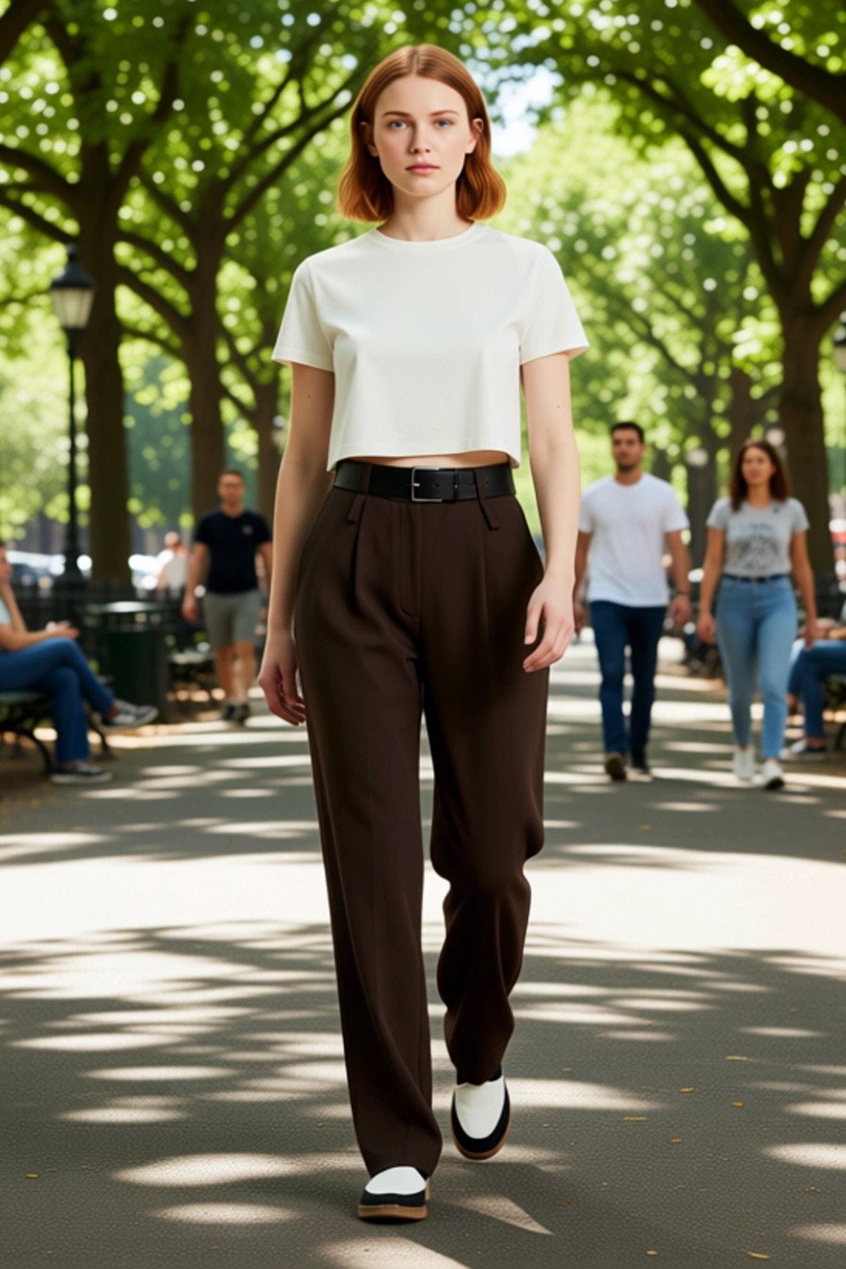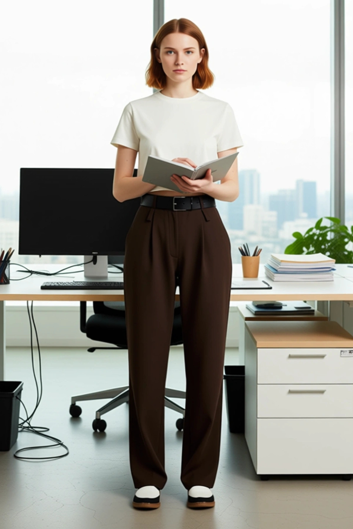 Bu kadın pantolonu, modern ve zarif tasarımıyla öne çıkıyor. Geniş paça kesimi, güncel moda trendlerini yansıtırken, düz kahverengi rengi zamansız bir şıklık sunuyor. Poliviskon dokuma kumaşı, %62 polyester, %32 viskoz ve %6 elastan içeriğiyle hem dayanıklı hem de esnek bir yapıya sahip. Bu özel materyal bileşimi, pantolonun gün boyu konforlu olmasını sağlarken, aynı zamanda kırışmaya karşı dirençli olmasını da destekliyor. Wide leg kalıbı, vücut hatlarını nazikçe sararak rahat bir hareket alanı sunuyor. Bu pantolon, smart ve şık bir görünüm arayan kadınlar için mükemmel bir seçimdir. Pantolonun tasarımında, bel kısmında yer alan kemer detayı dikkat çekiyor. Bu kemer, pantolona hem şık bir vurgu yapıyor hem de beli daha ince göstermeye yardımcı oluyor. Geniş paça kesimi, bacakları daha uzun ve zarif gösterme etkisine sahip. Normal bel yüksekliği, rahat bir kullanım sunarken, pantolonun genel siluetini de güçlendiriyor. Dokuma kumaşın kalitesi, pantolonun dokusunda hissediliyor ve uzun süreli kullanıma uygunluğunu gösteriyor. Bu pantolon, hem günlük hayatta hem de özel davetlerde rahatlıkla kullanılabilecek çok yönlü bir parçadır. Bu kahverengi geniş paça pantolon, dört mevsim boyunca gardırobunuzda yerini alabilir. İlkbahar ve yaz aylarında hafif bir bluz ve sandaletlerle kombinleyerek şık bir günlük stil oluşturabilirsiniz. Sonbahar ve kış aylarında ise triko bir kazak ve botlarla sıcak ve şık bir görünüm elde edebilirsiniz. Ofis ortamı için, zarif bir ipek gömlek ve topuklu ayakkabılarla kusursuz bir kombin yaratabilirsiniz. Pantolonun bakımında, kumaşın yapısını korumak için düşük sıcaklıkta yıkama ve ütüleme önerilir.