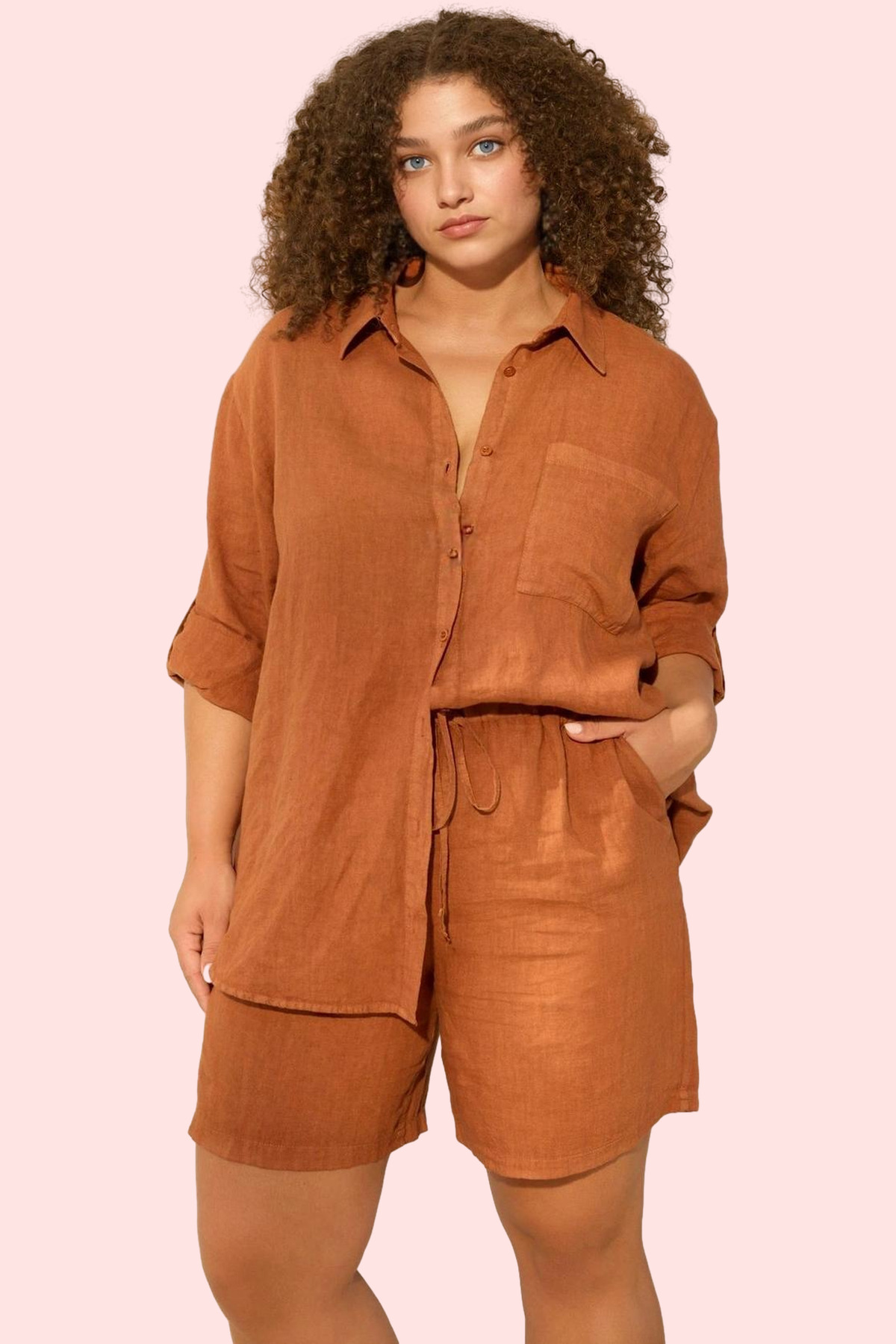 Bu muhteşem kahverengi keten şort ile yaz aylarının keyfini çıkarın! %100 keten kumaştan üretilen bu şort, benzersiz rahatlığı ve şıklığı bir araya getiriyor. Geniş paça tasarımı ile özgürce hareket edebilirken, yüksek beliyle de kusursuz bir görünüm elde edebilirsiniz. Kısa boyu, yaz sıcağında serin kalmanıza yardımcı olurken, doğal keten kumaşı nefes alabilir yapısıyla gün boyu konfor sağlar. Büyük beden seçeneğiyle de her vücut tipine uyum sağlayan bu şort, gardırobunuzun vazgeçilmez bir parçası olacak.