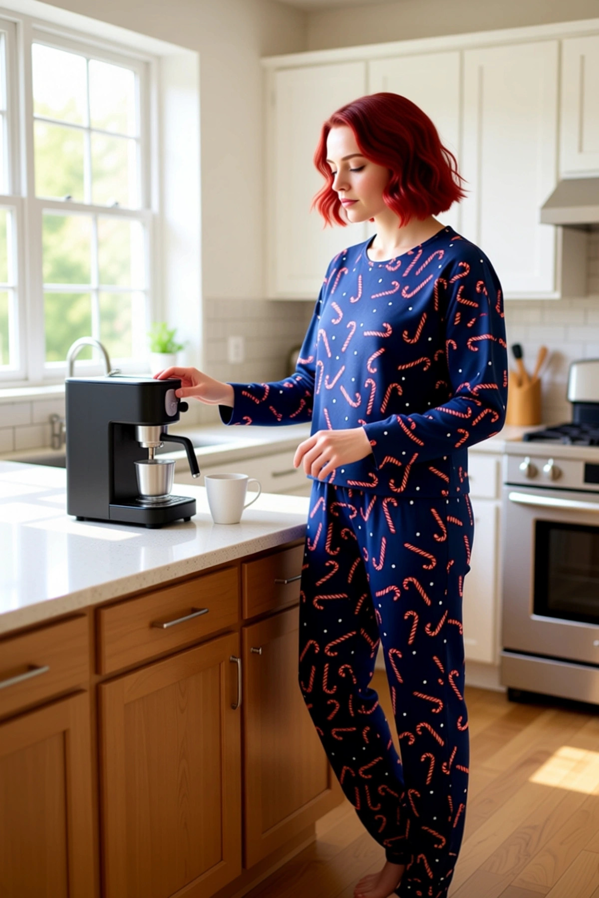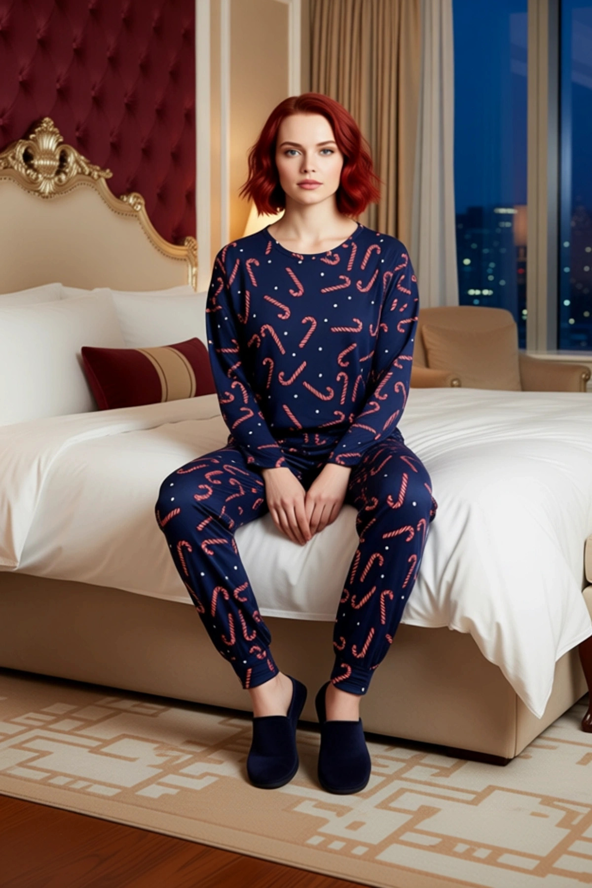 Bu göz alıcı pijama seti, kadınların kış gecelerini renklendirmek için tasarlandı. %100 pamuk kumaşı, cildinize dost ve nefes alabilen bir yapı sunarak maksimum konfor sağlar. Üzerindeki neşeli kırmızı şeker bastonları ve beyaz kar taneleriyle süslenmiş lacivert zemin, tam bir yılbaşı atmosferi yaratıyor. Bu eğlenceli desen, takıma dinamik ve sevimli bir hava katıyor. Regular kalıbı, her bedene uyum sağlayarak rahat bir kullanım deneyimi sunar. Bu set, evde geçirdiğiniz zamanı daha keyifli hale getirmek ve kışın soğuk günlerinde içinizi ısıtmak için idealdir. Kaliteli kumaşı ve özenli dikişleri, uzun yıllar boyunca ilk günkü gibi kalmasını sağlar. Takımın bisiklet yaka ve uzun kollu üstü, soğuk havalarda sıcak tutarken, jogger kesim ve dar paça pantolon, hareket serbestliği sunar. Bu tasarım, hem estetik hem de fonksiyonel bir bütünlük sunar. Üst kısmın rahat kesimi, uyku sırasında veya evdeki rahat aktivitelerinizde size özgürlük tanır. Pantolonun esnek beli, vücudunuza mükemmel uyum sağlayarak gün boyu süren bir konfor sunar. Süprem dokuma kumaş, yumuşaklığı ve dayanıklılığı ile bilinir, bu da takımın uzun süreli kullanımını destekler. Kadınların ev giyiminde hem şıklığı hem de rahatlığı bir arada arayanlar için bu pijama seti vazgeçilmez bir parça olacaktır. Bu pijama takımı, kış mevsiminin olmazsa olmazlarındandır. Evde rahat bir gün geçirmek için yumuşak bir tayt ve rahat bir sweatshirt ile harika bir uyum yakalar. Dışarıda kısa bir gezinti için, üzerine bir kot ceket ve spor ayakkabı ile şık bir casual görünüm oluşturabilirsiniz. Takımın bakımı oldukça pratiktir; makinede yıkanabilir ancak renklerin canlılığını uzun süre korumak için düşük sıcaklıkta hassas yıkama önerilir. Bu set, hem kendiniz için hem de sevdikleriniz için düşünceli ve keyifli bir hediye seçeneği sunar.