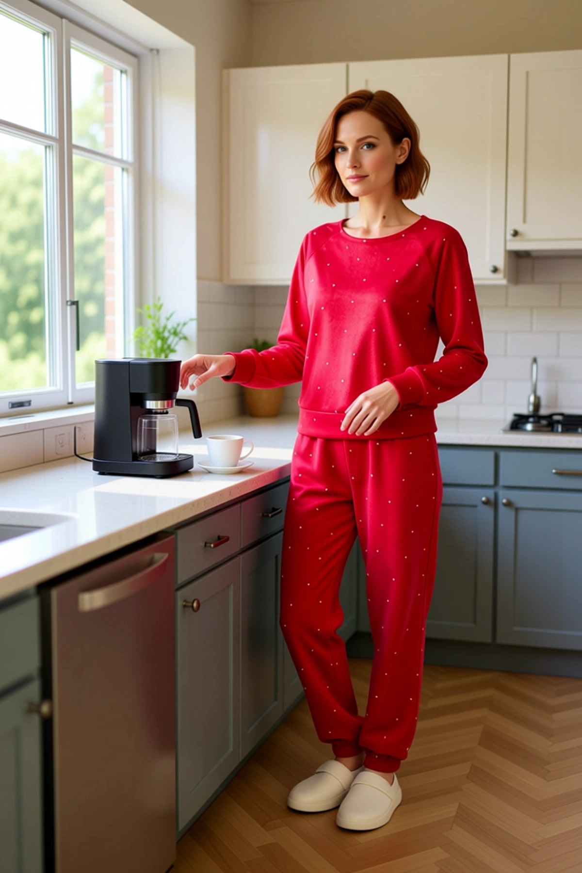 Kadin Kirmizi Puantiyeli Polar Lounge Seti Fonksiyonel Dayanıklı Kaliteli Konforlu Estetik