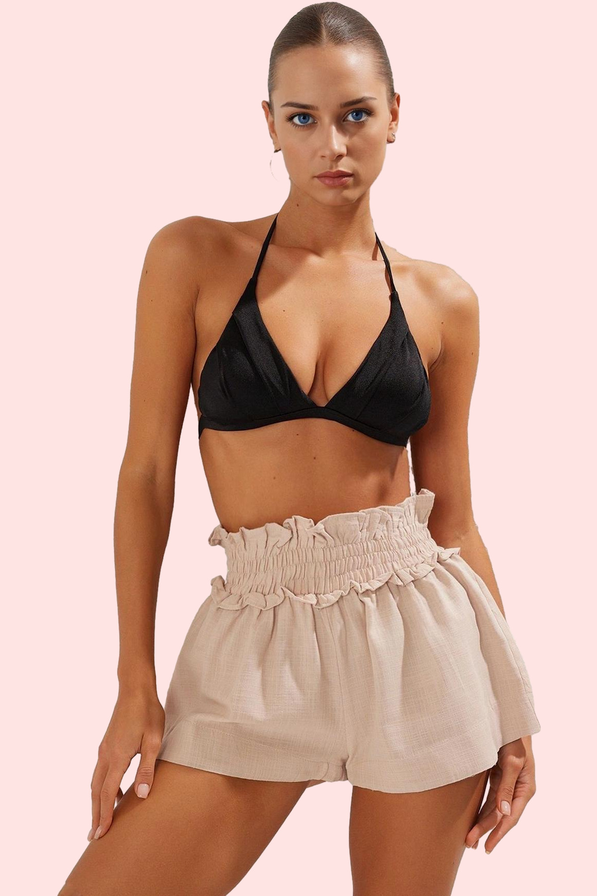 Rahatlığı ve şıklığı bir arada arayan kadınlar için mükemmel bir seçim olan bu bej şort, yaz aylarının vazgeçilmez parçalarından biri olmaya aday. Kısa boyu ve geniş paçası sayesinde özgürce hareket edebilir, yazın sıcak günlerinde rahatlığın tadını çıkarabilirsiniz. Yüksek kaliteli dokuma kumaştan üretilen şort, nefes alabilir ve dayanıklı yapısıyla uzun süreli kullanım sağlar. Normal bel yapısı, her vücut tipine uyum sağlar. Düz deseni ve fırfırlı detayı ile şık bir görünüm sunan şort, plaj kombinlerinizin yanı sıra günlük yaşamda da rahatlıkla kullanabileceğiniz bir parça.
