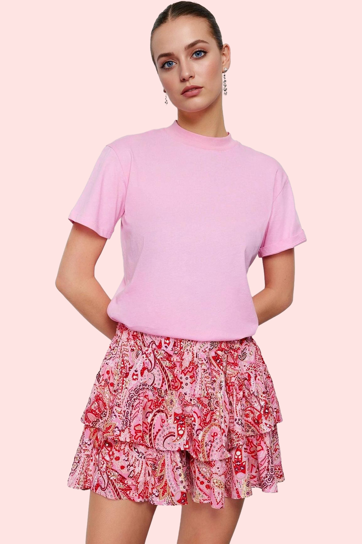 Bu şort etek, şal deseni ve canlı kırmızı rengi ile tarzınızı yansıtır. Şık ve rahat yapısı sayesinde günlük hayatta, arkadaş buluşmalarında, alışverişte veya hafta sonu planlarınızda gönül rahatlığıyla kullanabilirsiniz. Yüksek bel detayı sayesinde belinizi ince gösterir ve vücut hatlarınızı güzel bir şekilde ortaya çıkarır. Geniş paçalı tasarımı ise rahatlık sunar.