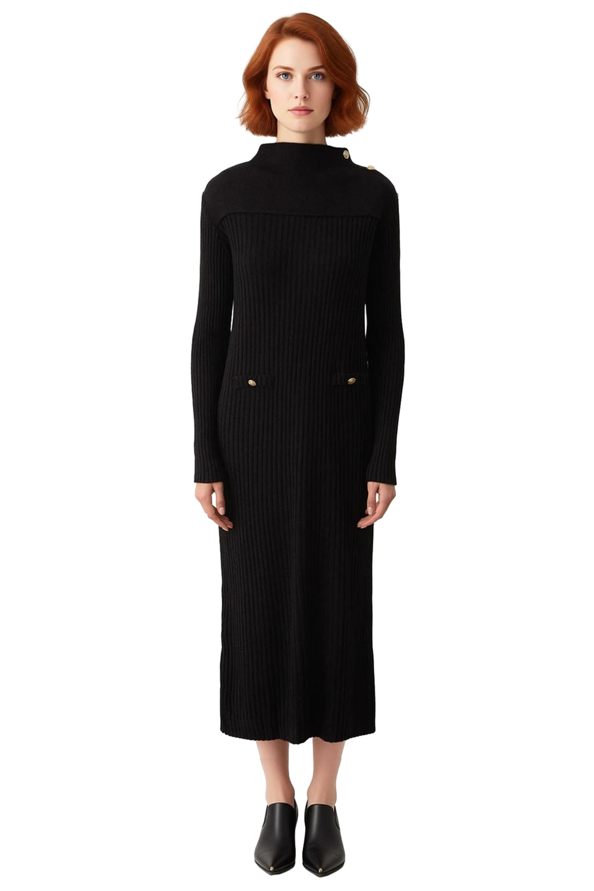 Kadın Kışlık Dik Yaka A Line Ribana Triko Elbise Uzun Kollu Maxi Boy Günlük Kullanım İçin İdeal