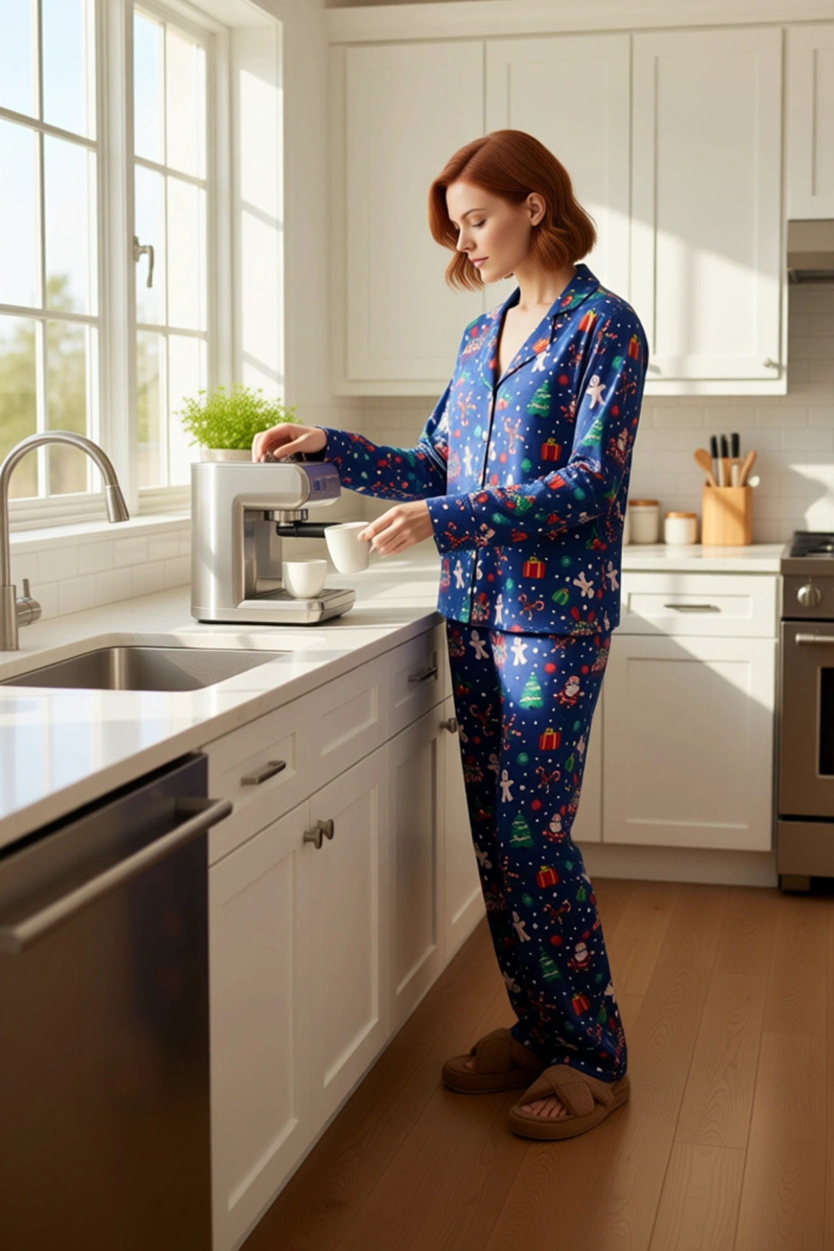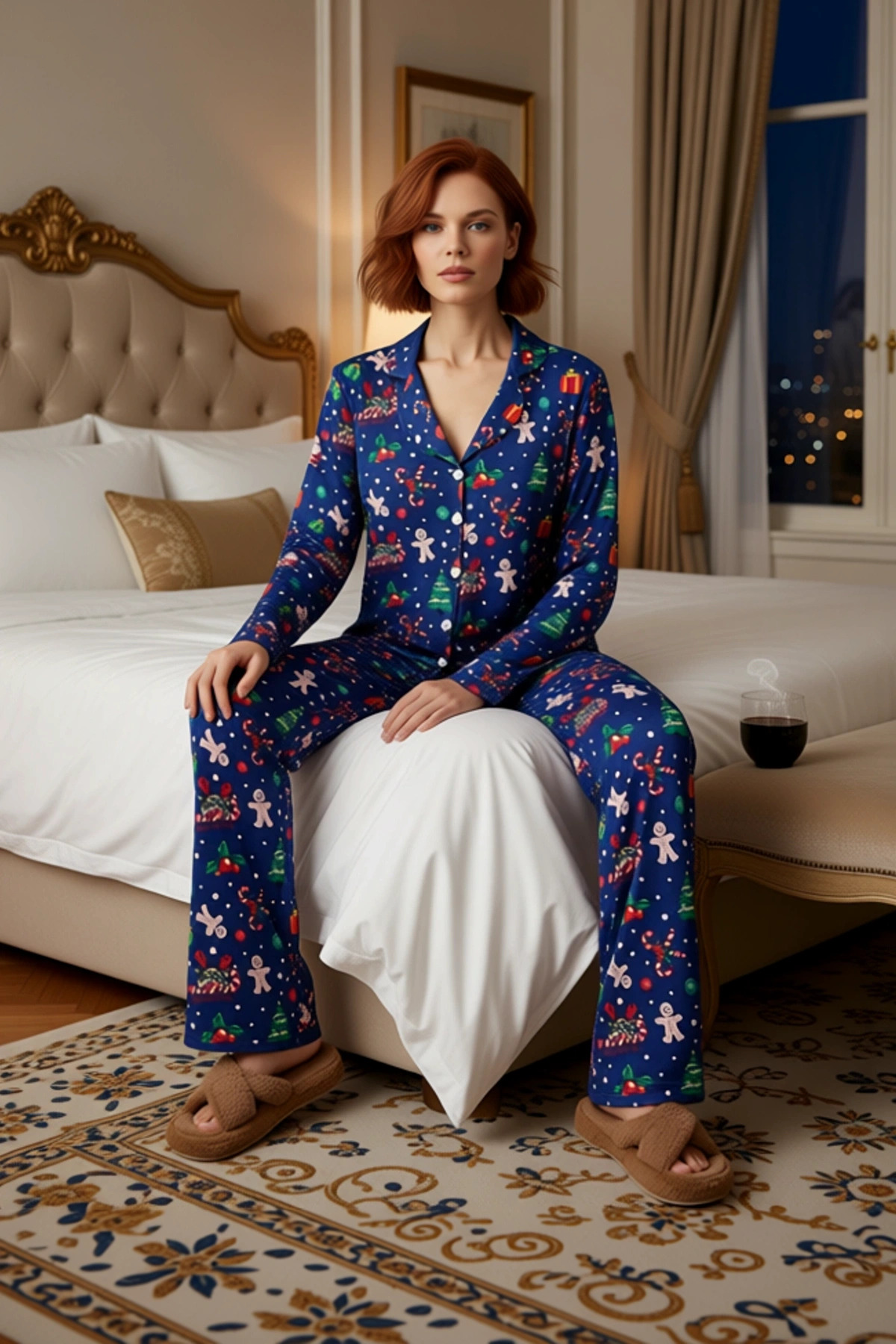 Kadın Kışlık Yılbaşı Temalı Pijama Takımı Fonksiyonel Dayanıklı Kaliteli Konforlu Estetik Şık
