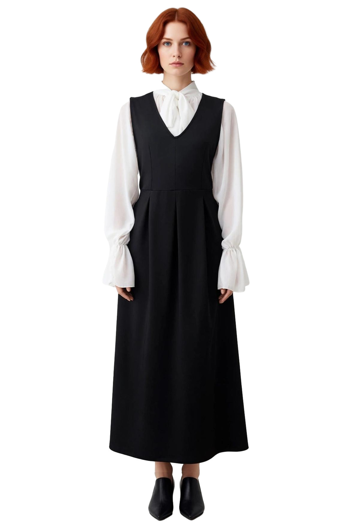 Kadın Kolsuz Düz Desen Skater Elbise V Yaka Dalgıç Kumaş Tesettür Giyim Kış Şıklığı Kaliteli