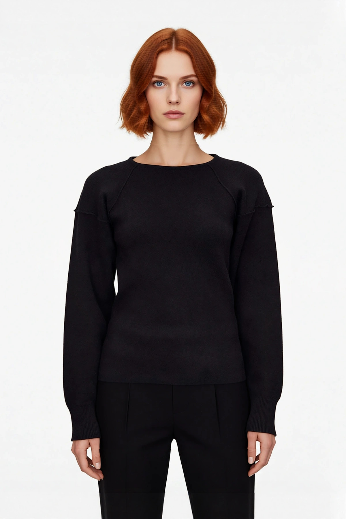 Ürün Özellikleri: Regular kalıp, viskoz polyester poliamid materyal, düz desen, bisiklet yaka, standart kol, triko kumaş, siyah renk.