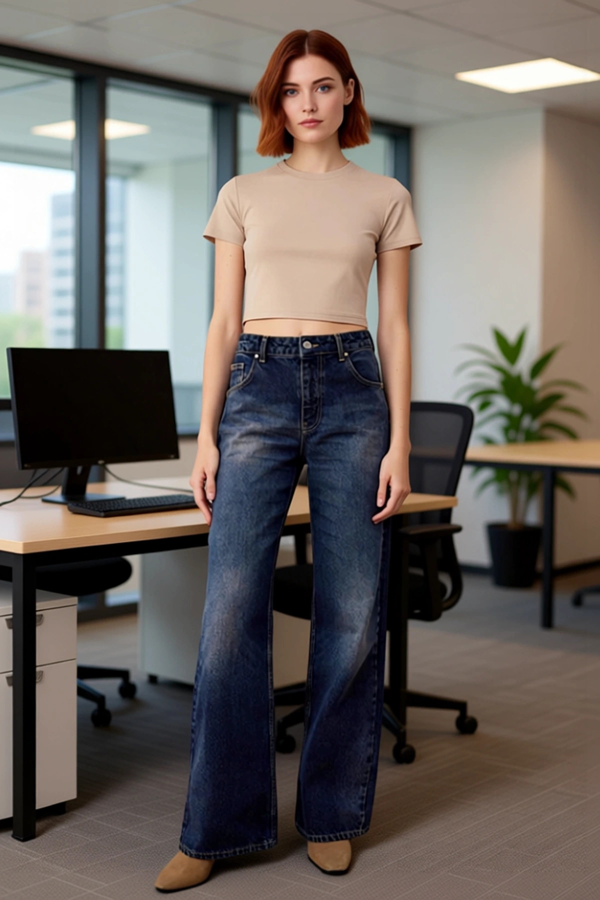 Bu kadın pantolonu, modern ve rahat bir stil arayanlar için tasarlanmıştır. Geniş paça kesimi, hareket özgürlüğü sağlarken, normal bel detayı gün boyu konfor sunar. %100 pamuk kumaşı, cildinize dost ve nefes alabilen bir yapıya sahiptir, bu da özellikle sıcak havalarda bile rahatlık sağlar. Koyu mavi rengi ve düz deseni, klasik bir görünüm sunarken, denim kumaşın dokusu pantolona otantik bir hava katmaktadır. Rigid dokuma tipi, pantolonun formunu korumasına yardımcı olur ve dayanıklılığını artırır. Bu pantolon, cool ve konforlu bir stil benimseyen kadınlar için ideal bir seçimdir. Wide leg silueti, güncel moda trendlerine uygun bir görünüm sunarken, zamansız denim kumaşıyla da her zaman şık kalacaktır. Günlük kullanım için hem pratik hem de stil sahibi bir seçenektir. Pantolonun öne çıkan özellikleri arasında geniş paça, normal bel ve düz desen yer alır. Bu tasarım unsurları, pantolona hem modern hem de klasik bir estetik kazandırır. %100 pamuk içeriği, kumaşın yumuşaklığını ve nefes alabilirliğini sağlarken, rigid denim dokusu pantolonun uzun ömürlü olmasını garanti eder. Bu pantolon, rahatlığı ön planda tutan ancak stilinden ödün vermek istemeyen kadınlar için mükemmel bir seçenektir. Geniş paça kesimi, bacakları daha uzun ve ince gösterme eğilimindedir. Cool ve konforlu bir persona yansıtmak isteyenler için bu pantolon, gardıroplarının temel taşlarından biri olacaktır. Günlük kullanımda şıklığı ve rahatlığı bir arada sunar. Bu geniş paça denim pantolon, dört mevsim boyunca rahatlıkla giyilebilir. İlkbahar ve sonbaharda ince kazaklar, tişörtler ve sweatshirt’lerle kombinlenebilir. Yaz aylarında ise crop top’lar veya hafif bluzlarla harika bir görünüm oluşturur. Kışın, kalın trikolar ve uzun kabanlarla birlikte kullanıldığında sıcak ve şık bir stil sunar. Bu pantolonu, spor ayakkabılarla rahat bir günlük görünüm için veya topuklu botlar ve şık bir bluzla daha resmi bir etkinlik için tercih edebilirsiniz. Beyaz bir tişört ve kanvas ayakkabılarla klasik bir kombin oluşturabilir veya deri bir ceket ve botlarla daha asi bir tarz yakalayabilirsiniz. Pantolonun bakımı için, renklerin canlılığını korumak adına benzer renklerle ve düşük sıcaklıkta yıkama önerilir.