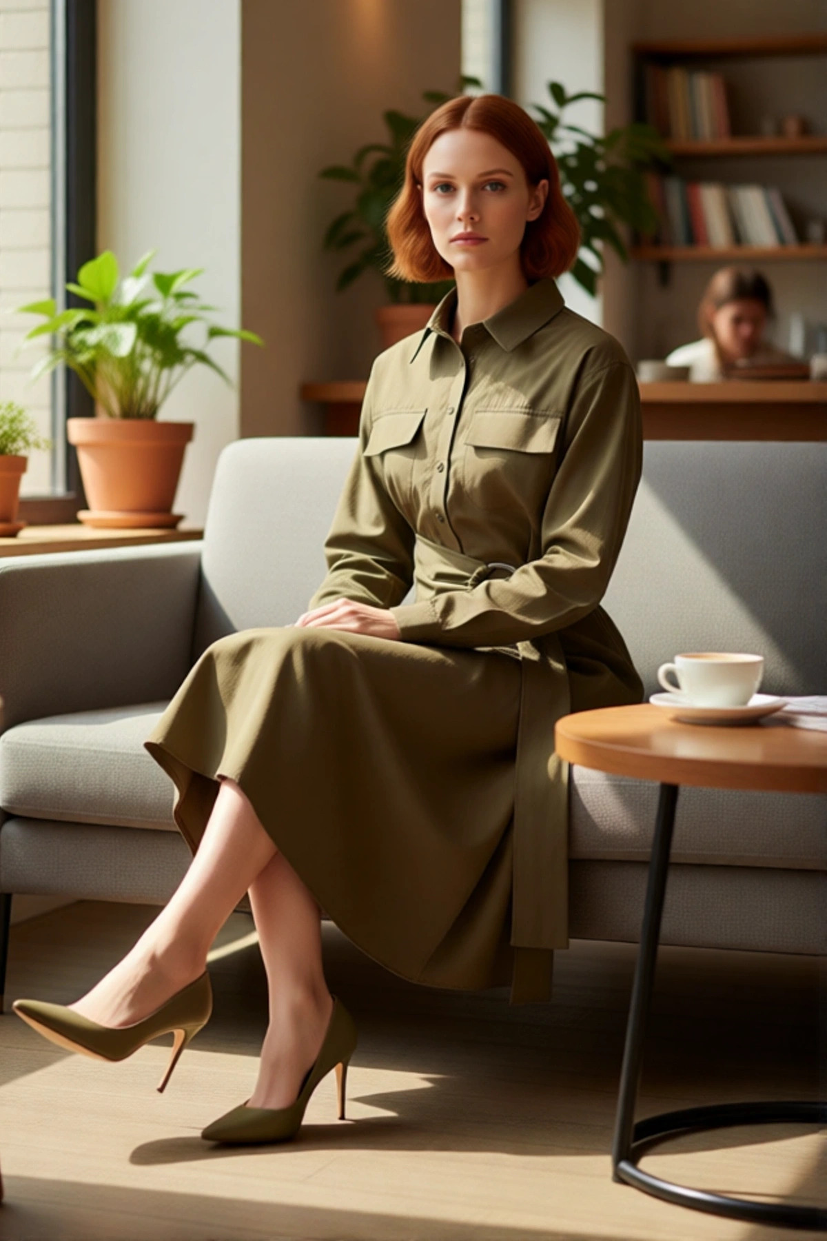 Bu haki renk midi elbise, A-line kesimi sayesinde her vücut tipini kusursuzca tamamlar. Kış aylarında çizme ve kalın hırkalarla, sonbaharda ise hafif ceketlerle kombinleyerek farklı mevsimlere adapte edebilirsiniz. Günlük kullanım için ideal olan bu model, casual şıklığı ofis ortamına veya sosyal etkinliklere taşımak için harika bir seçenektir.