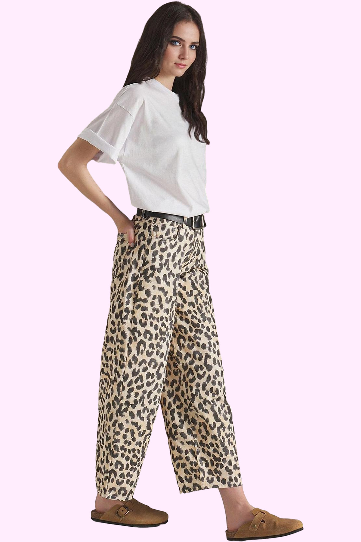 Bu pantolon, 36-44 beden aralığında mevcut olup, uzun boy ölçüsüyle her boyda kadına uygundur. Casual bir tarz için düz renk bir tişört ve spor ayakkabılarla; daha şık bir görünüm için ise ince askılı bir bluz ve topuklu ayakkabılarla kombinleyebilirsiniz. Leopar deseninin çok yönlülüğü sayesinde, farklı stillere uyum sağlayacak bir parça. Pantolonun rahatlığı ve şıklığı, gün boyu kendinizi iyi hissetmenizi sağlayacaktır. Denim kumaşı sayesinde dayanıklı ve uzun ömürlüdür.