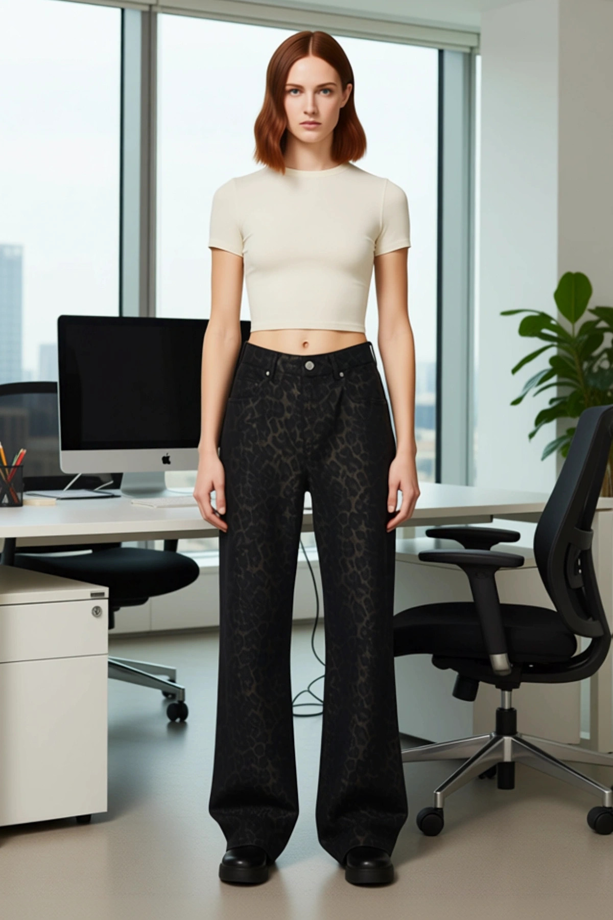 Kadınlar için tasarlanan bu bol paça denim pantolon, cesur leopar deseniyle stilinize enerjik bir dokunuş katıyor. Yüksek bel özelliği, vücut formunu güzelce vurgularken, bol paça kesimi rahat ve modern bir silüet sunuyor. %100 pamuktan üretilmiş olması, gün boyu süren konfor ve hava alabilirlik sağlıyor. Rigid denim kumaş dokusu, pantolonun formunu koruyarak uzun ömürlü bir kullanım sunuyor. Bu pantolon, hem günlük şıklığınızı tamamlamak hem de dikkat çekici bir görünüm elde etmek isteyenler için ideal bir seçimdir. Leopar deseninin farklı renk tonlarının uyumu, pantolona dinamik bir hava katarken, bol paça kesimi hareket özgürlüğü sunuyor. Kendinden emin ve stil sahibi kadınlar için tasarlanmış bu jean, gardırobunuzun vazgeçilmez parçalarından biri olacak. Bu yüksek bel bol paça denim pantolon, rahatlığı ve şıklığı bir arada sunuyor. Yüksek bel detayı, bel bölgesini sararak daha ince bir görünüm sağlarken, bol paça kesimi hareket özgürlüğü sunuyor ve modern bir estetik katıyor. %100 pamuk materyali, cildinize nazik davranarak gün boyu konfor sağlıyor. Rigid denim yapısı, pantolonun duruşunu koruyarak zamansız bir görünüm kazandırıyor. Bu jean, hem rahat bir günlük kullanım hem de stil sahibi bir görünüm için mükemmel bir seçenektir. Leopar deseninin çekiciliği, pantolona özgün bir karakter katıyor ve her kombinde fark yaratmanızı sağlıyor. Bu leopar desenli bol paça jean pantolon, her mevsim rahatlıkla kullanılabilir. Özellikle bahar ve yaz aylarında serin tutarken, kış aylarında da uygun üstlerle tercih edilebilir. Bu pantolonu, basic bir t-shirt, şık bir bluz veya triko bir kazak ile kombinleyebilirsiniz. Ayakkabı olarak sneaker, bot veya topuklu sandaletler tercih edebilirsiniz. Üzerine deri ceket, bomber ceket veya uzun bir hırka alarak stilinizi tamamlayabilirsiniz. Bu jean, hem günlük kullanımda hem de daha özel etkinliklerde rahatlıkla tercih edilebilir. Bakımı için ters çevirerek ve soğuk suyla yıkayarak kumaşın ömrünü uzatabilirsiniz.