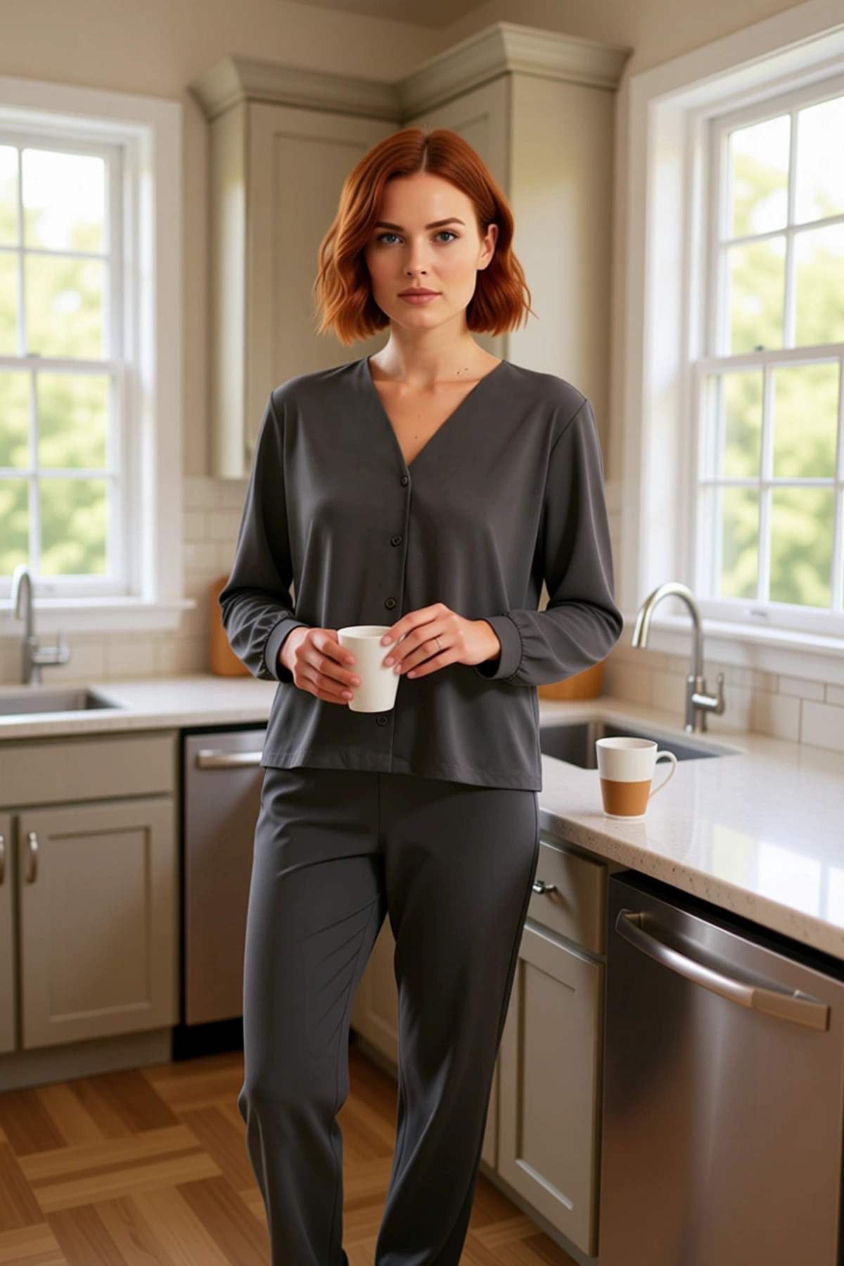 Bu şık ve rahat pijama takımı, evdeki stilinizi bir üst seviyeye taşıyacak. Kadınlara özel olarak tasarlanan bu takım, %100 pamuk kumaşı ile cildinize nazik bir dokunuş sunar. Düz deseni ve antrasit rengi, zamansız bir zarafet katarken, örme dokusu yumuşaklığıyla öne çıkar. Üst kısımda yer alan V yaka ve düğmeli ön tasarım, hem modern hem de fonksiyonel bir detaydır. Regular kalıp, her vücut tipine uyum sağlayarak rahat bir kullanım sunar. Bu pijama takımı, özellikle lounge ve ev ortamında konforu ön planda tutan kadınlar için ideal bir seçenektir. Süprem kumaşın nefes alabilen yapısı, gün boyu ferahlık hissi verirken, hafifliği hareket özgürlüğünüzü kısıtlamaz. Ev giyiminde hem şıklığı hem de rahatlığı bir arada arayanlar için mükemmel bir tercihtir. Takımın üstü, uzun kollu ve standart kesimdir, V yaka detayı zarif bir görünüm sağlarken, düğmeli ön kısım kolay kullanım imkanı sunar. Alt kısmı ise, uzun paçalı ve boru paça jogger modeldir, bu da rahat bir oturuş ve hareket özgürlüğü sağlar. Regular kalıp, vücuda tam oturan ancak sıkmayan bir yapıdadır. %100 pamuk materyali, cildinize yumuşaklık hissi verir ve alerji riskini minimize eder. Örme kumaşın esnekliği, uyku sırasında veya evdeki aktivitelerinizde maksimum konfor sunar. Bu pijama takımı, cool ve comfort persona’ya hitap eden, rahatına düşkün kadınlar için tasarlanmıştır. Evde geçirilen zamanı daha keyifli hale getiren bu takım, şık ve fonksiyonel bir seçenektir. Bu pijama takımı, özellikle kış aylarında sıcak ve konforlu bir seçenek sunar. Pantolon ve tişört kombinleri yerine, bu şık pijama takımıyla evde rahat bir gün geçirebilirsiniz. Jean pantolon ve spor ayakkabılarla kombinleyerek rahat bir günlük stil oluşturabilirsiniz. Evde ise, yumuşak terlikler veya ev ayakkabıları ile tamamlayarak konforunuzu maksimize edebilirsiniz. Bakımı oldukça basittir; düşük sıcaklıkta makinede yıkanabilir ve hassas program tercih edilebilir. Renklerin canlılığını korumak için ters çevirerek yıkama önerilir. Bu sayede pijama takımınızın kalitesini uzun süre muhafaza edebilirsiniz.