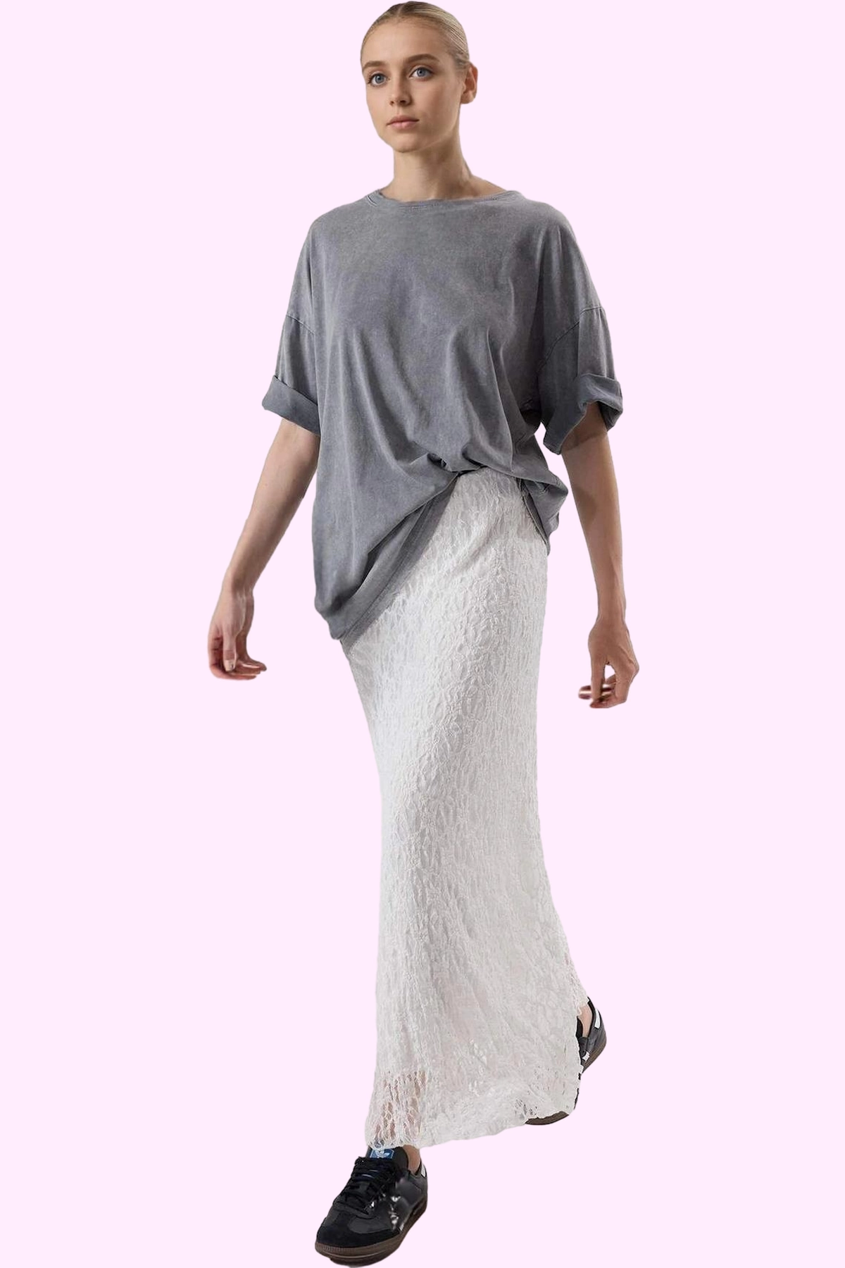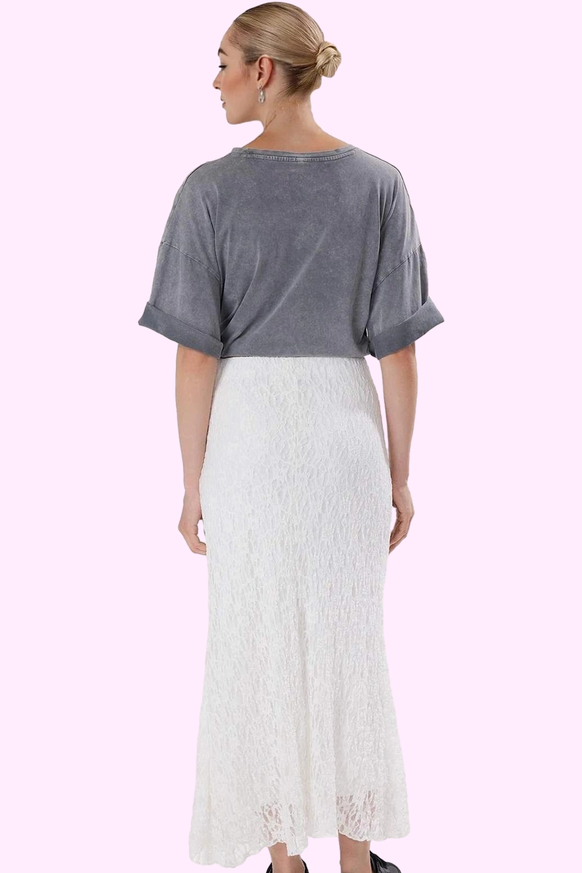 Kadın Maxi Boy Dantel Etek Asimetrik Kalıp Örme Kumaş Renk Gündüz Ve Gece Günlük Kombinler