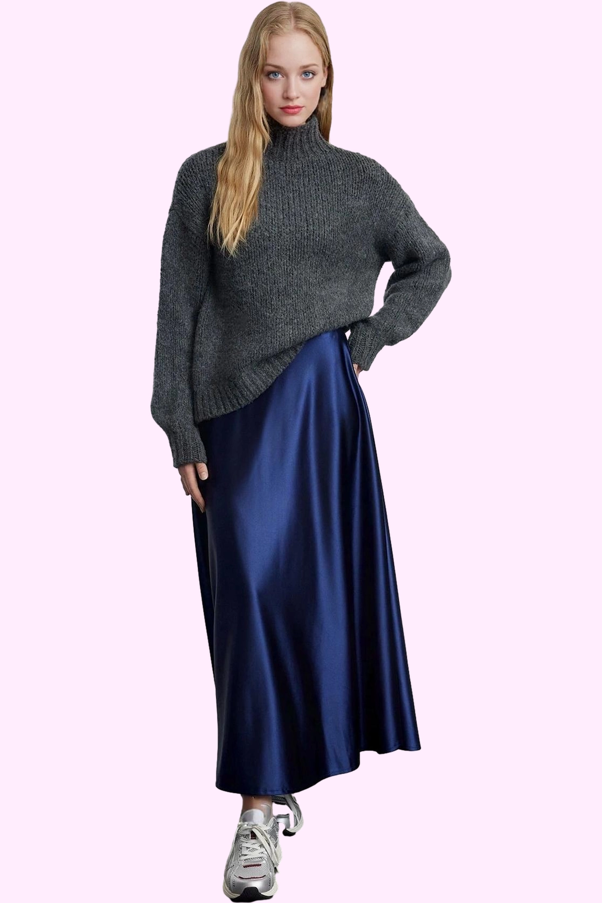Yaz aylarının şıklığını yakalamak için mükemmel bir seçim olan bu lacivert maxi etek, her stile uyum sağlayacak bir tasarıma sahip. Yüksek bel detayları, bacaklarınızı daha uzun ve ince göstererek vücut proporsiyonlarınızı dengelemenize yardımcı olur. A-line kesimiyle rahatlığı ve şıklığı bir arada sunan etek, gün boyu konforlu bir kullanım sağlar. Saten dokusu ile göz alıcı bir görünüme sahip olan etek, günlük kombinlerinizin yanı sıra özel davetlerinizde de tercih edilebilir.