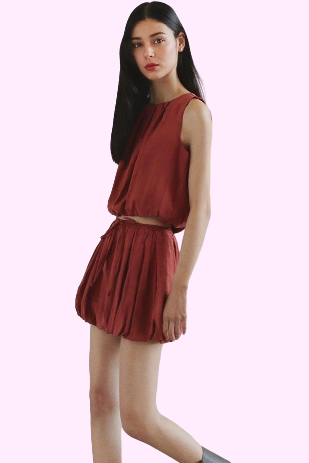 Yaz aylarının vazgeçilmez parçası olacak bu bordo mini etek, şıklığı ve rahatlığı bir arada sunuyor. Balon silüeti ve yüksek beliyle dikkat çeken tasarımı, vücut hatlarınızı zarifçe ortaya koyarken konforlu bir kullanım sağlıyor. Melfi dokuma tekniğiyle üretilen özel kumaşı, üstün kalite ve dayanıklılık sunuyor. Nefes alabilir ve yumuşak yapısıyla gün boyu rahatlık hissi veriyor. 83% Modal ve 17% Polyester karışımı olan bu kumaş, kolay ütülenmesi ve kırışma yapmamasıyla da öne çıkıyor.