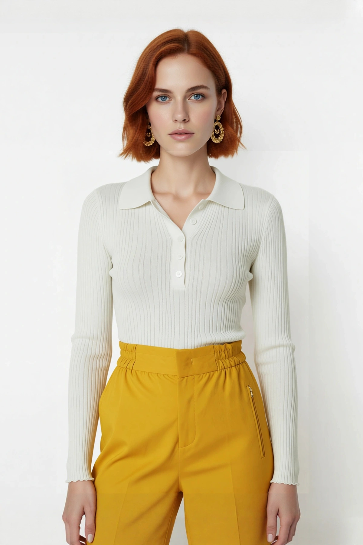 Kadın Merserize Görünümlü İnce Yapılı Uzun Kollu Polo Yaka Triko Kazak Şık ve Rahat Kaliteli
