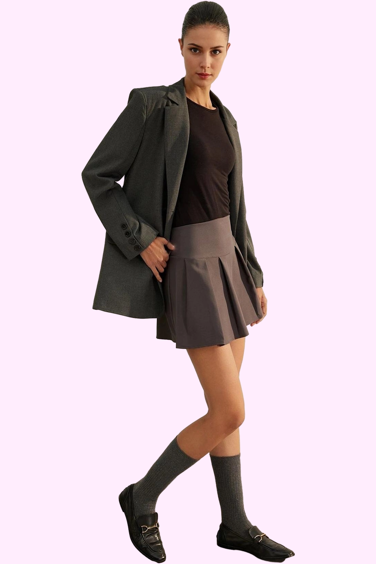 Materyal: Polyester Karışımlı, Desen: Düz, Kalıp: A-line, Kumaş Tipi: Dokuma, Renk: Gri, Ürün Tipi: Düz, Ürün Detayı: Kemerli, Cep: Cepsiz, Astar Durumu: Astarsız, Boy: Kısa / Mini, Siluet: A-line, Ortam: Casual/Günlük, Dokuma Tipi: Finike, Persona: Fashion Forward, Sürdürülebilirlik Detayı: Hayır, Kemer/Kuşak Durumu: Kemerli, Bel: Normal Bel, Materyal Bileşeni: 87% Polyester, 13% Elastan, Yıkama Talimatı: T10, Sezon: Tüm Sezonlar, Menşei: TR, Paket İçeriği: Tekli