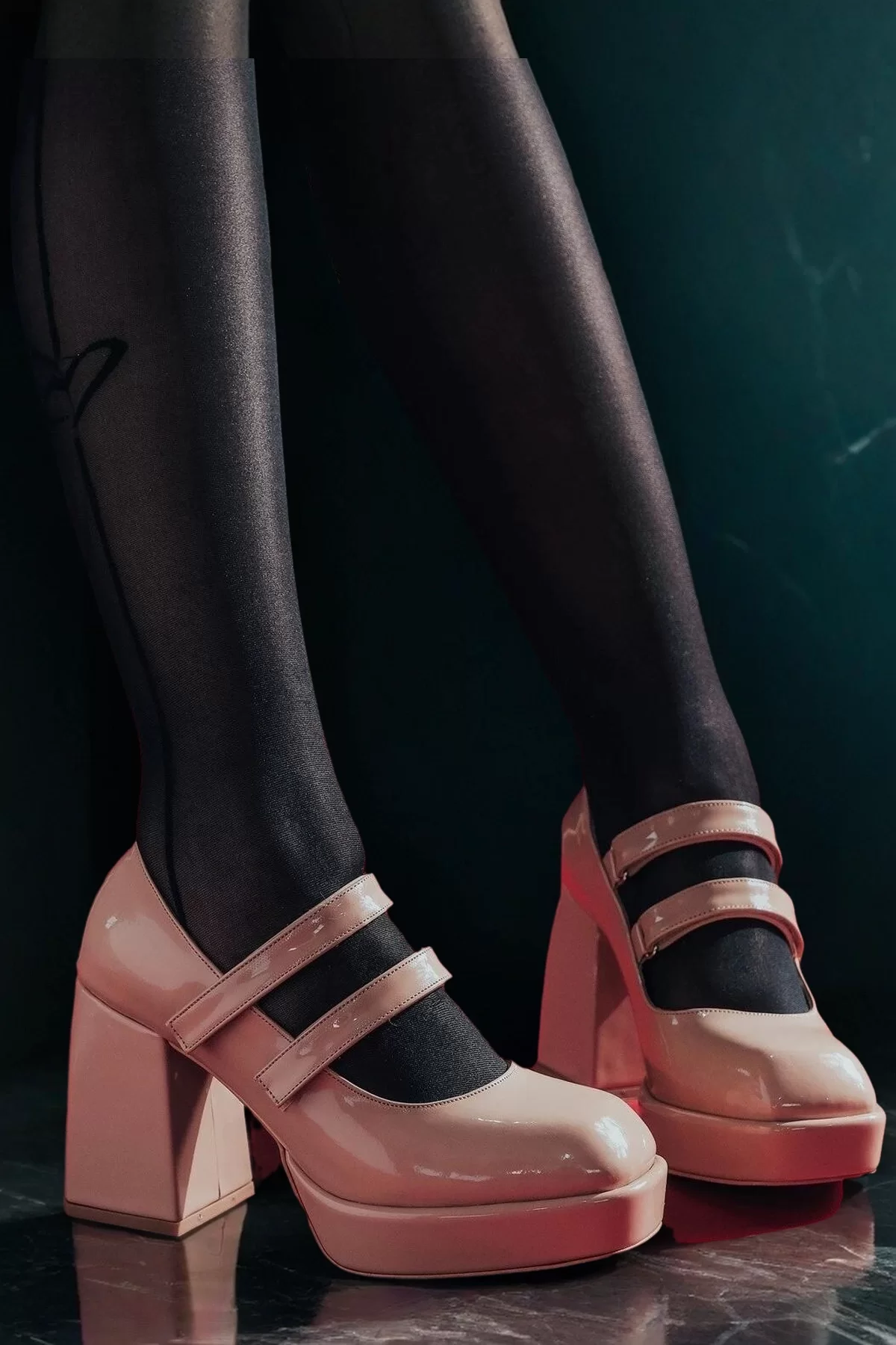 Kadın Moda Beyaz Rugan Çift Cırtlı Platform Topuklu Ayakkabı Şık ve Zarif Abiye Ayakkabı - Görsel 4