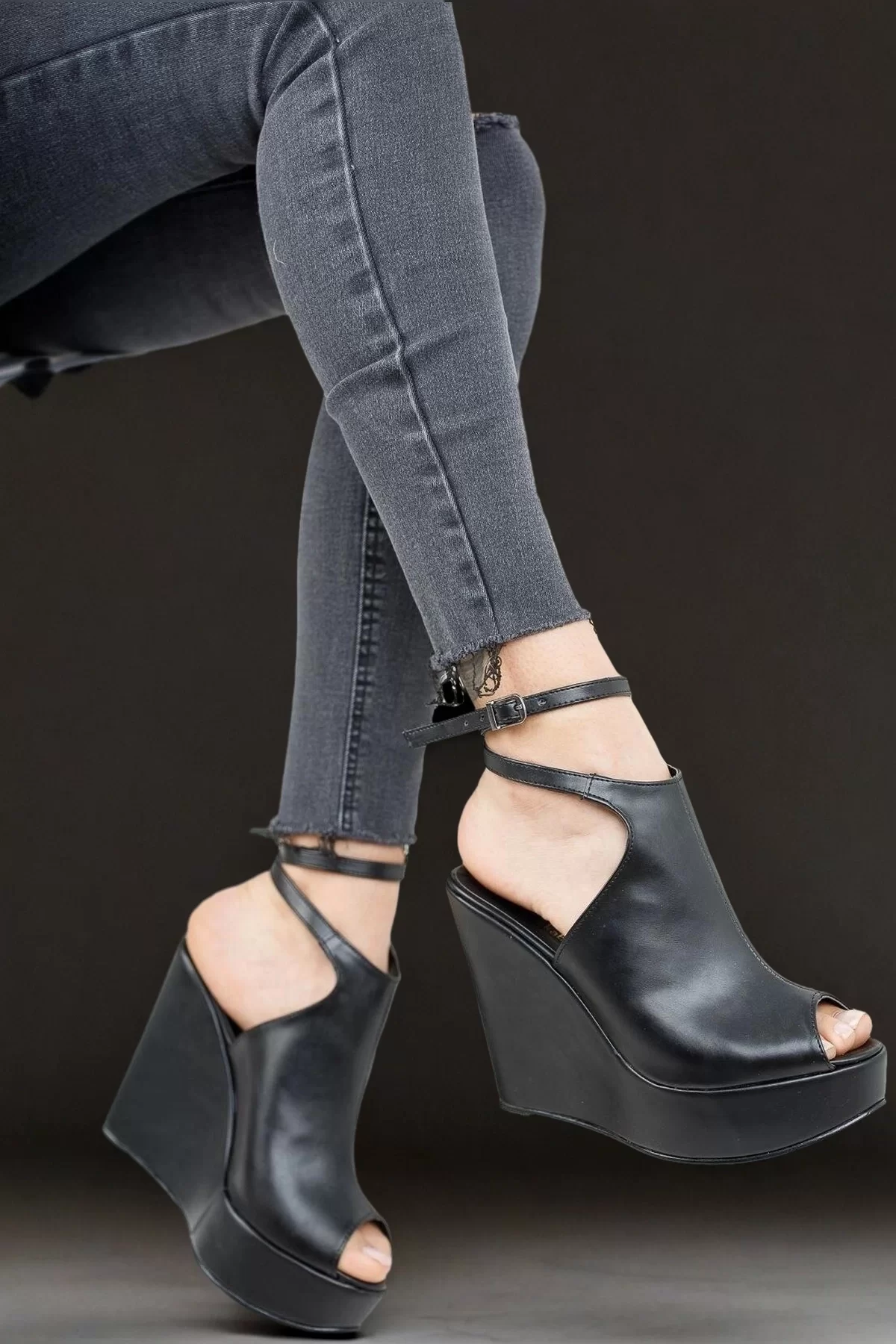 Kadın Moda Çift Bant Dolgu Topuklu Ayakkabı Şık ve Zarif Abiye Ayakkabı