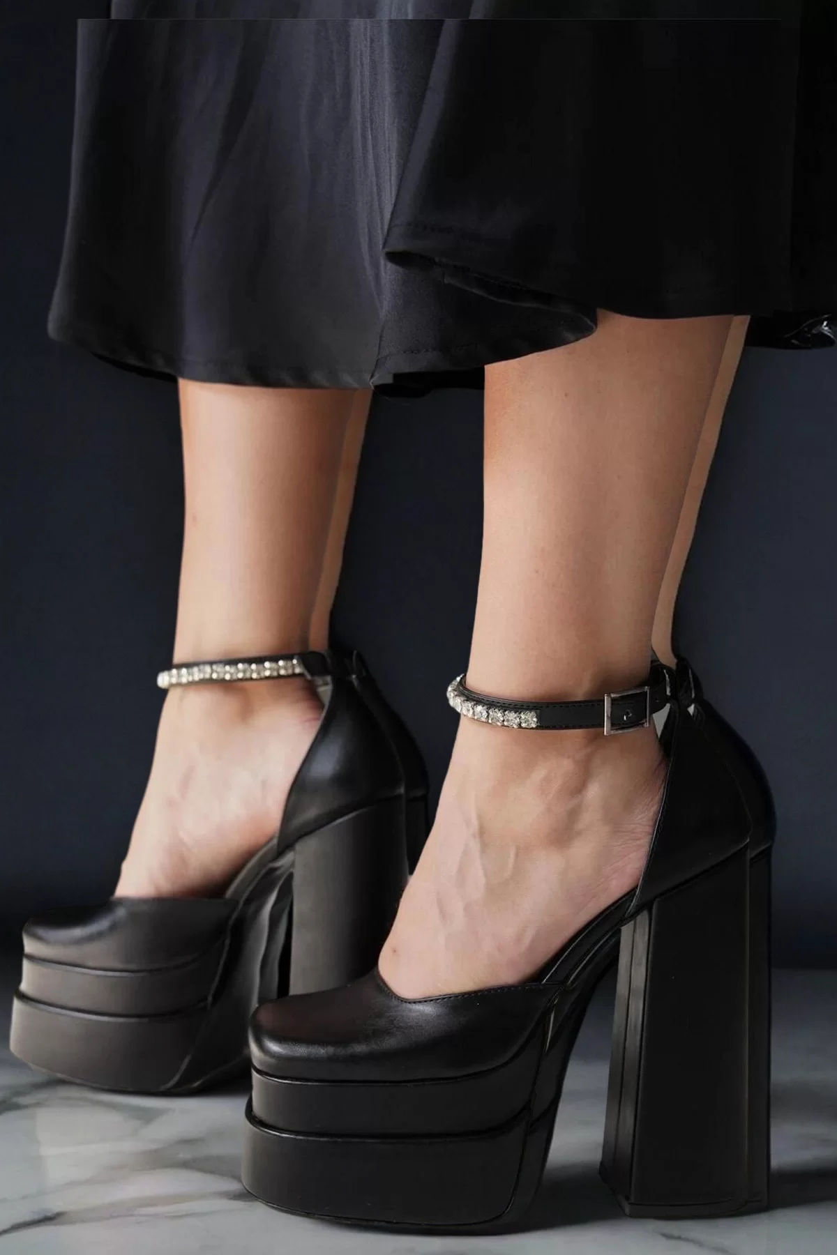 Kadın Moda Platform Tasarım Toka Detaylı Orta Topuklu Ayakkabı Şık ve Zarif Abiye Ayakkabı