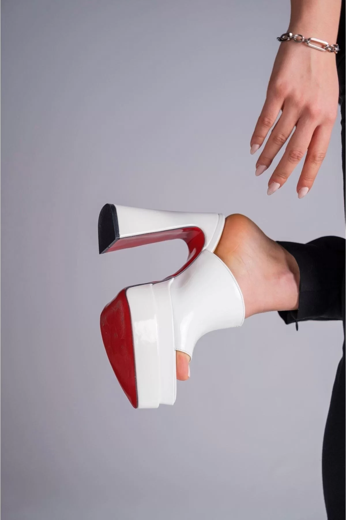 Kadın Moda Çift Platform Tasarım Burnu Kapalı Yüksek Topuklu Terlik Şık ve Zarif Abiye Ayakkabı - Görsel 3