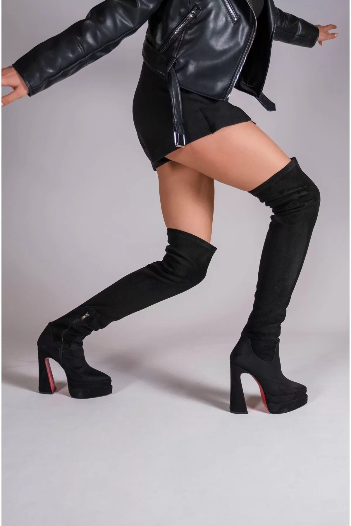 Kadın Moda Çift Platform Yüksek Topuklu Diz Üstü Çizme Şık ve Zarif Abiye Ayakkabı
