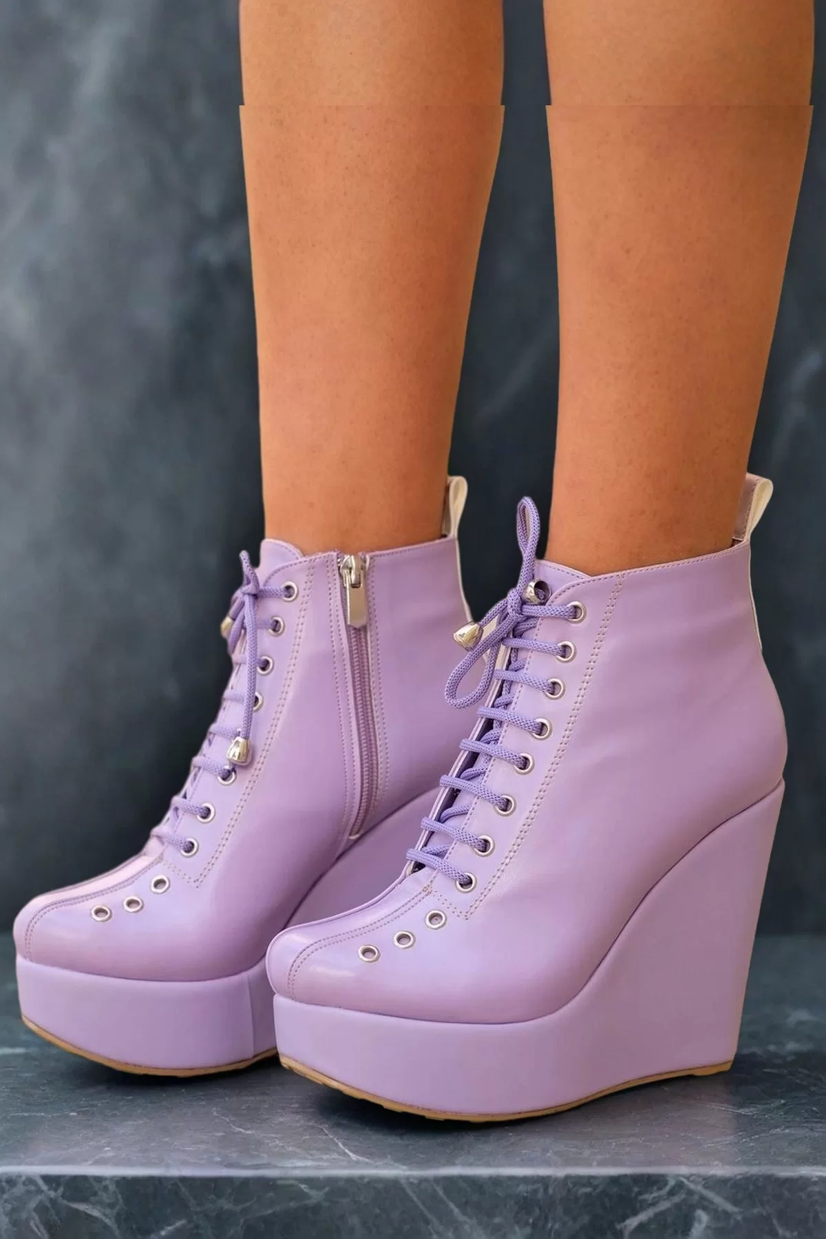 Kadın Dolgu Topuk Bağcıklı Bot, stil sahibi kadınların dolabında mutlaka bulunması gereken, zarif detaylarla tasarlanmış bir modeldir. Topuk Boyu: 12 cm sayesinde hem günlük kullanıma hem de özel davetlere uygun rahat bir deneyim sunar. Modern çizgileri ve kaliteli yapısıyla hem şıklığı hem de konforu bir arada yaşamanızı sağlar.