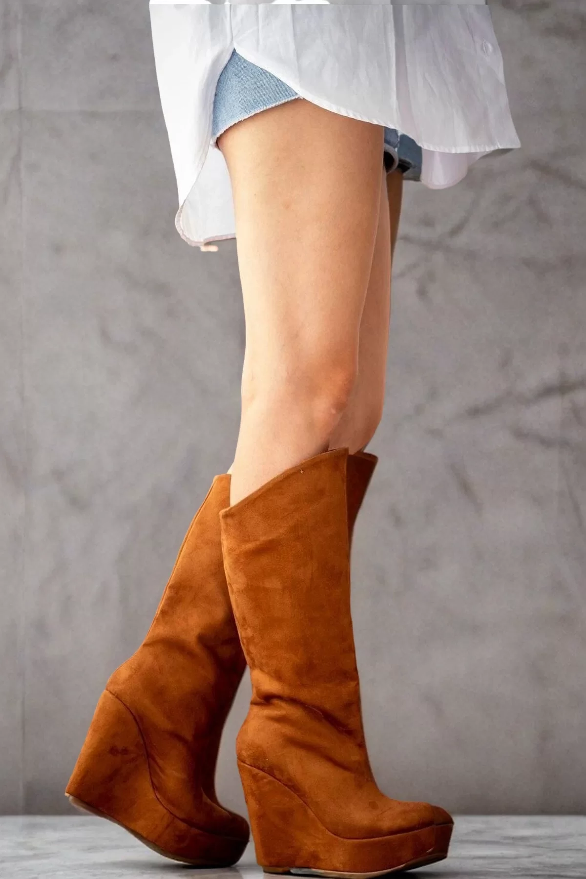 Kadın Dolgu Topuk Diz Altı Çizme, stil sahibi kadınların dolabında mutlaka bulunması gereken, zarif detaylarla tasarlanmış bir modeldir. nan sayesinde hem günlük kullanıma hem de özel davetlere uygun rahat bir deneyim sunar. Modern çizgileri ve kaliteli yapısıyla hem şıklığı hem de konforu bir arada yaşamanızı sağlar.
