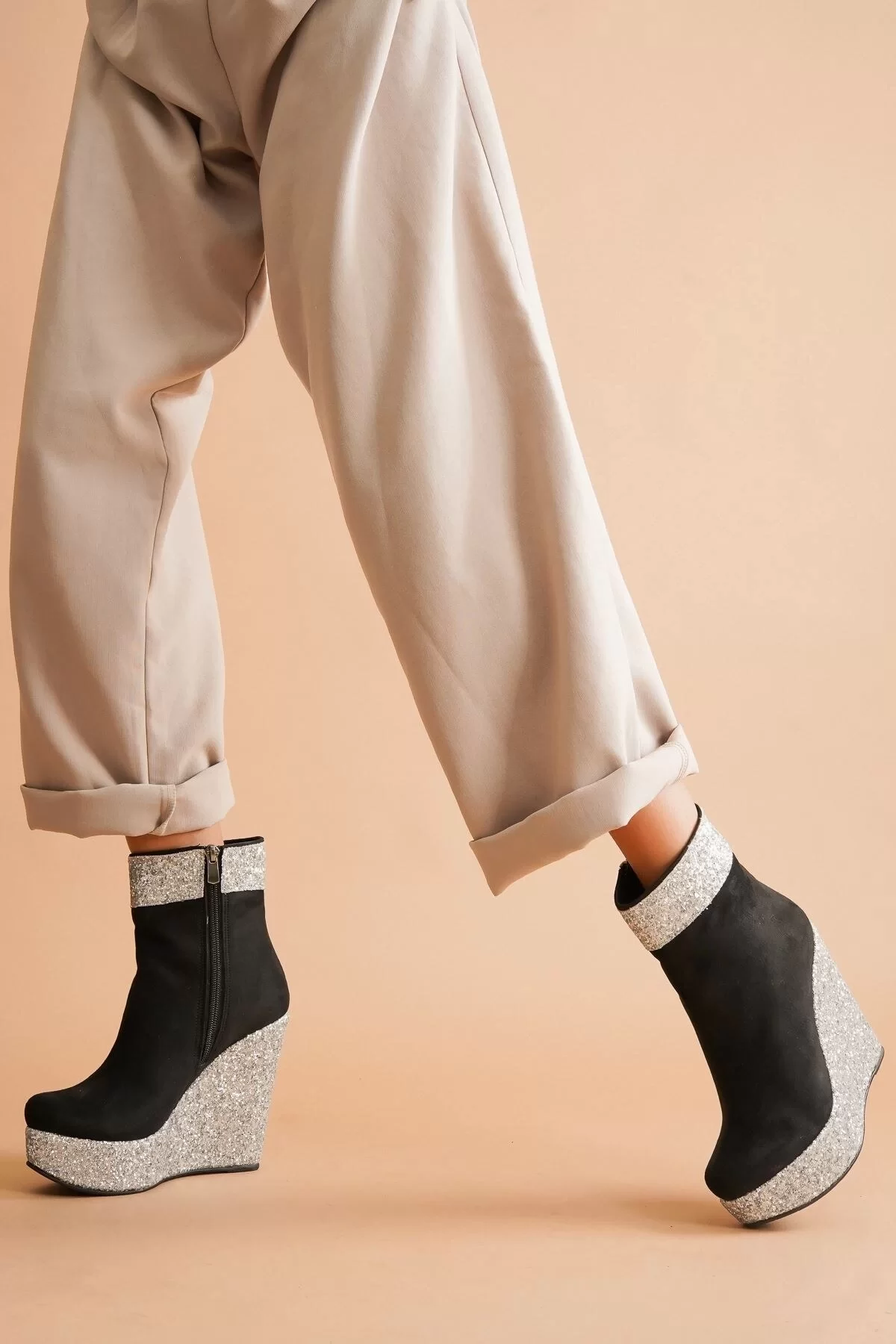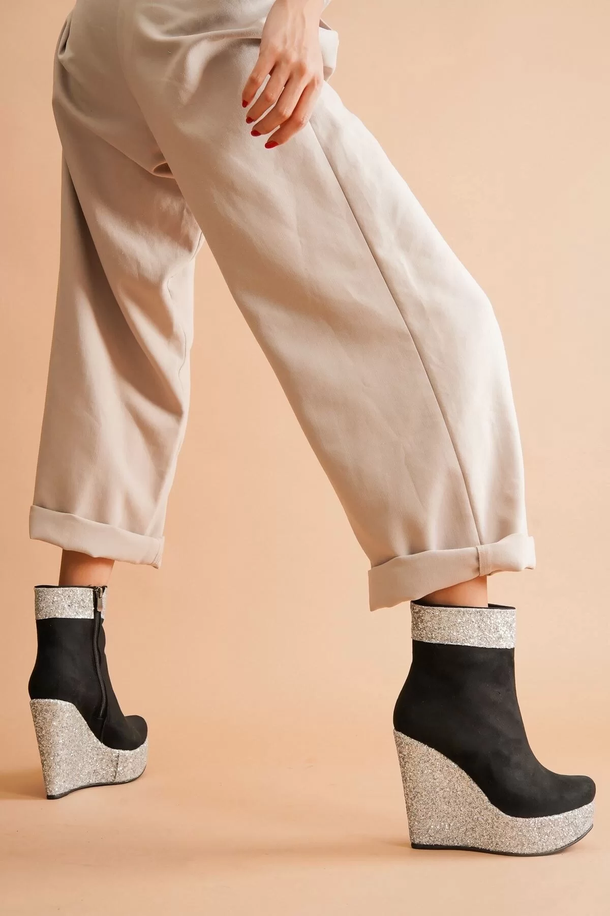 Kadın Moda Dolgu Topuk Fermuarlı Bot Daina Şık ve Zarif Abiye Ayakkabı - Görsel 4