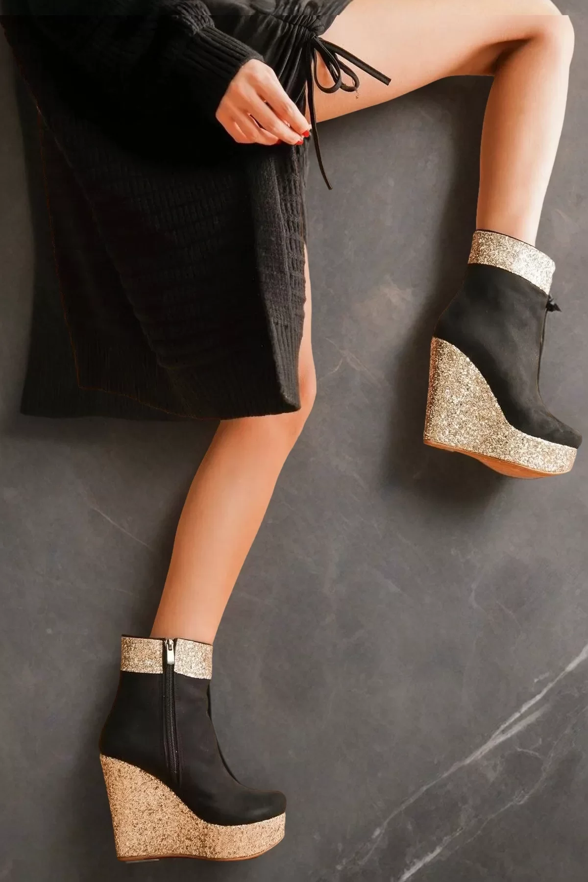 Kadın Moda Dolgu Topuk Fermuarlı Bot Daina Şık ve Zarif Abiye Ayakkabı - Görsel 4