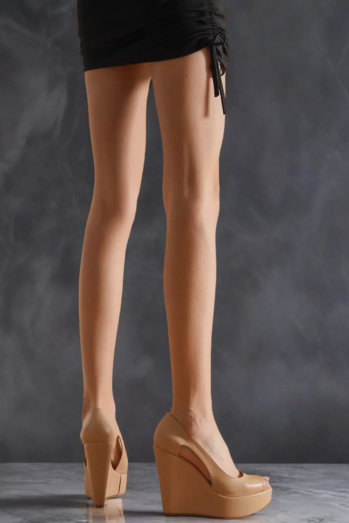 Kadın Moda Burun Açık Dolgu Topuklu Ayakkabı Şık ve Zarif Abiye Ayakkabı