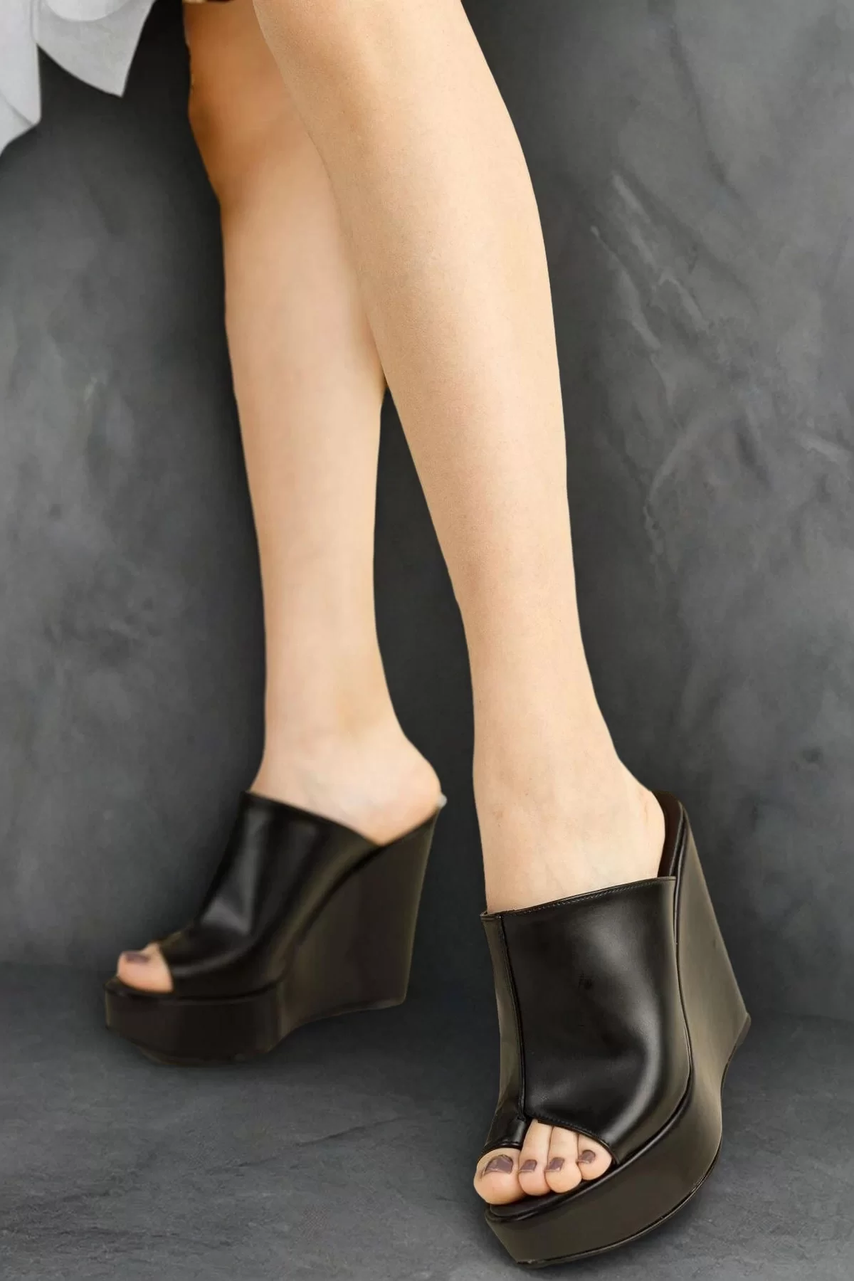 Kadın Moda Dolgu Topuklu Parmak Arası Terlik Şık ve Zarif Abiye Ayakkabı