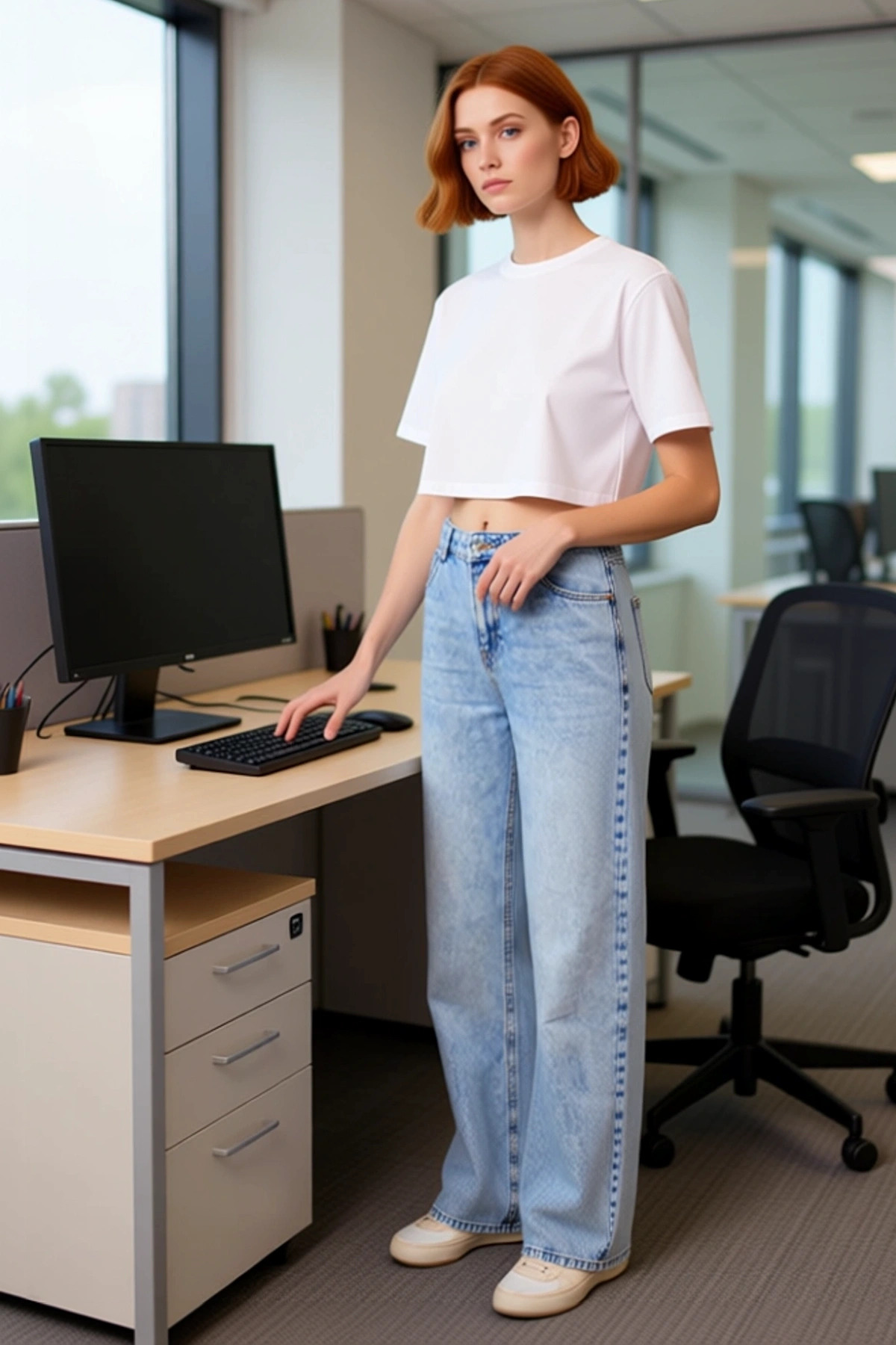 Bu kadın kot pantolonu, moda ve konforu bir araya getiren tasarımıyla dikkat çekiyor. Yüksek bel detayı, vücudu sararak feminen bir duruş sağlarken, geniş paça kesimi güncel modanın izlerini taşıyor. %100 pamuktan üretilmiş olması, cildinize dost bir dokunuş sunarken aynı zamanda nefes alabilen bir yapı kazandırır. Düz deseni ve açık mavi rengi ile minimalist bir şıklık sunan bu pantolon, her gardıropta olması gereken temel parçalardan biridir. Geniş paça, hareket özgürlüğü sunarken aynı zamanda zarif bir görünüm oluşturur. Bu pantolon, hem günlük kullanımda hem de daha şık kombinlerde rahatlıkla tercih edilebilir. Dayanıklı yapısı sayesinde uzun süreli kullanıma uygundur. Pantolonun öne çıkan özellikleri arasında, modern kadının gardırobuna hitap eden yüksek bel ve geniş paça kesimi yer alır. Bu kesimler, hem rahatlık hem de stil açısından önemli avantajlar sunar. Yüksek bel, beli vurgulayarak daha ince bir görünüm elde etmeye yardımcı olurken, geniş paça ise güncel moda akımlarını yansıtır. %100 pamuk kumaşı, yumuşak dokusu ve hava geçirgenliği ile gün boyu konfor sağlar. Rigid dokuma, pantolonun formunu korumasını sağlayarak daha derli toplu bir görünüm sunar. Bu pantolon, rahatlığı ve şıklığı bir arada arayan kadınlar için tasarlanmıştır. Günlük kullanımda jean’in sunduğu rahatlığı hissetmek isteyenler için ideal bir seçenektir. Bu geniş paça kot pantolon, her mevsim için uygun bir seçenektir. İlkbahar ve yaz aylarında ince trikolar ve basic tişörtlerle, sonbahar ve kış aylarında ise kalın kazaklar ve sweatshirt’lerle kombinlenebilir. Altına şık bir sneaker veya bot tercih edilebilir. Örneğin, beyaz bir crop top ve platform sneaker’larla genç ve dinamik bir görünüm yakalayabilirsiniz. Daha klasik bir stil için ise ipek bir bluz ve topuklu ayakkabılarla tamamlayabilirsiniz. Bu pantolonun bakımı için makinede yıkanması ve düşük sıcaklıkta ütülenmesi önerilir.