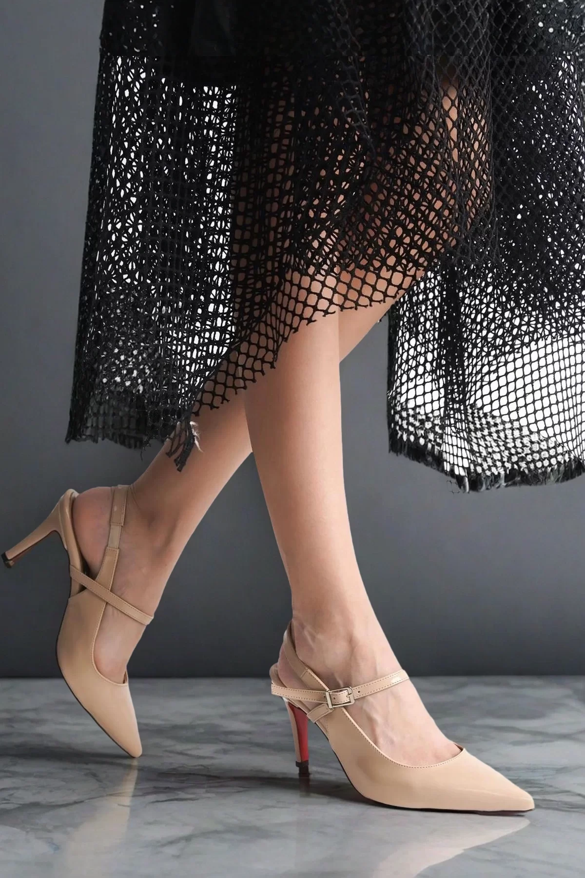 Kadın Moda İnce Topuklu Baretli Tasarım Ayakkabı Stiletto Şık ve Zarif Abiye Ayakkabı