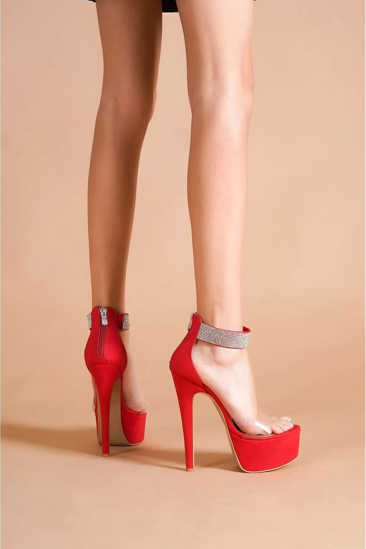 Kadın Moda İnce Topuklu Taşlı Bilekli Platform Şık ve Zarif Abiye Ayakkabı - Görsel 4