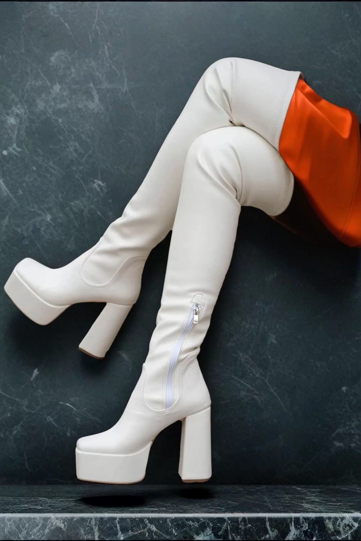 Kadın Moda Diz Altı Yüksek Topuk Platform Çizme Şık ve Zarif Abiye Ayakkabı