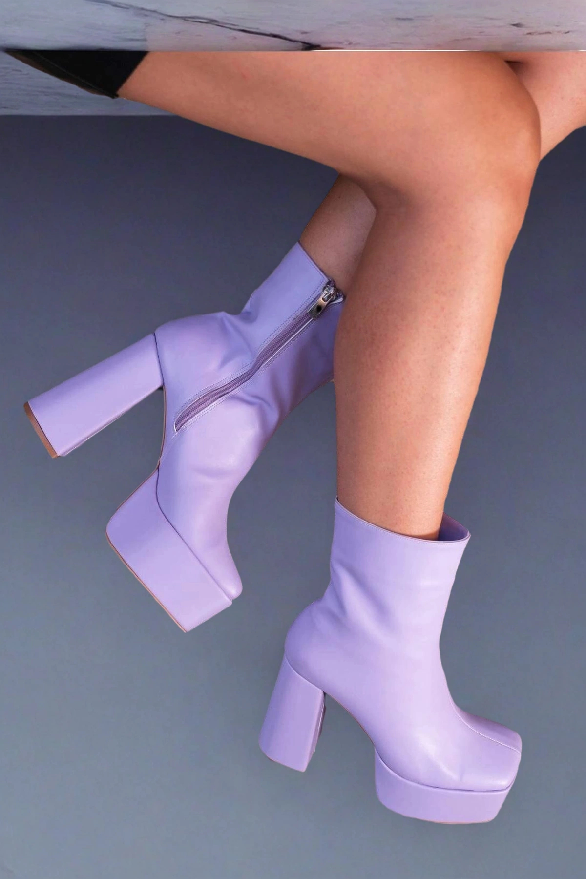 Kadın Moda Kısa Platform Topuklu Bot Şık ve Zarif Abiye Ayakkabı