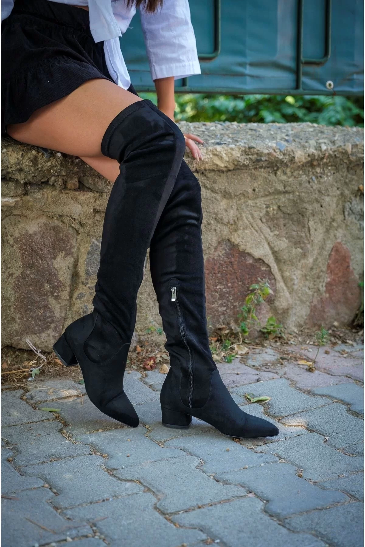 Kadın Moda Kısa Topuklu Diz Üstü Streç Çizme Şık ve Zarif Abiye Ayakkabı - Görsel 3
