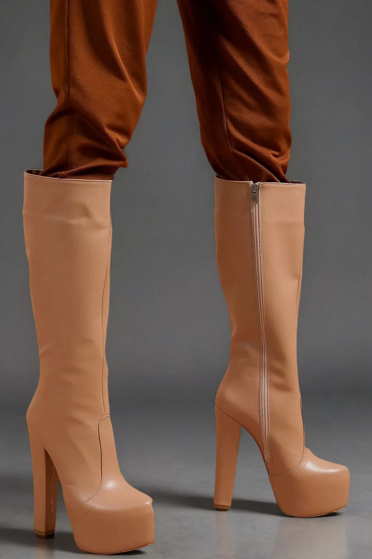 Kadın Moda Platform Topuklu Fermuarlı Çizme Şık ve Zarif Abiye Ayakkabı - Görsel 4