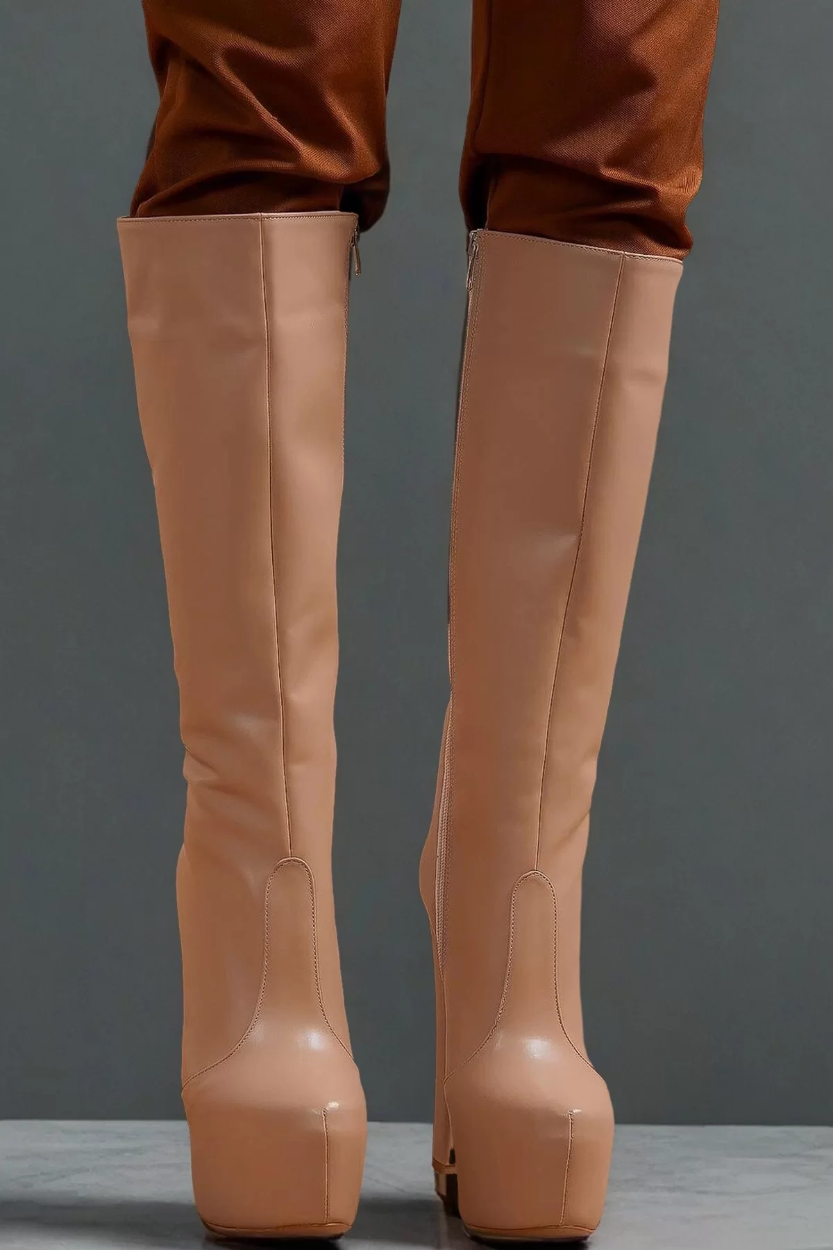 Kadın Moda Diz Altı Yüksek Topuk Platform Çizme Şık ve Zarif Abiye Ayakkabı