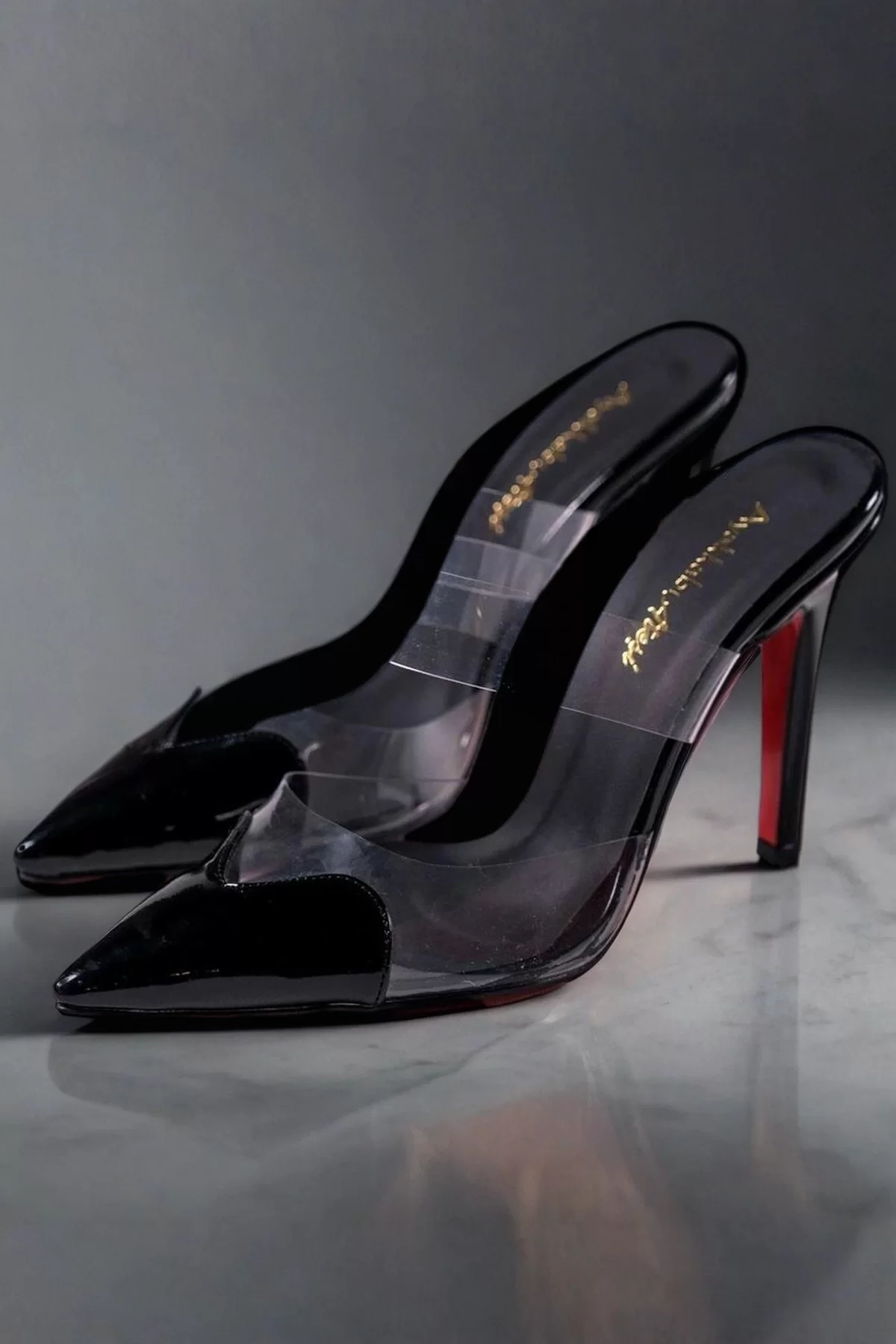 Kadın Moda Şeffaf Bant Sivri Burun Topuklu Terlik Şık ve Zarif Abiye Ayakkabı