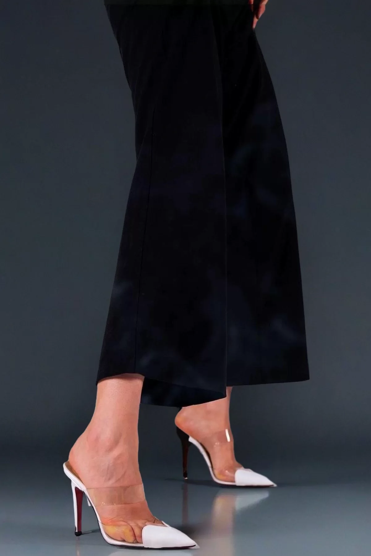 Kadın Moda Şeffaf Bant Sivri Burun Topuklu Terlik Şık ve Zarif Abiye Ayakkabı