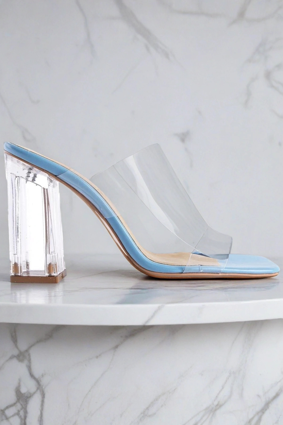 Kadın Moda Şeffaf Topuklu Terlik Şık ve Zarif Abiye Ayakkabı - Görsel 3