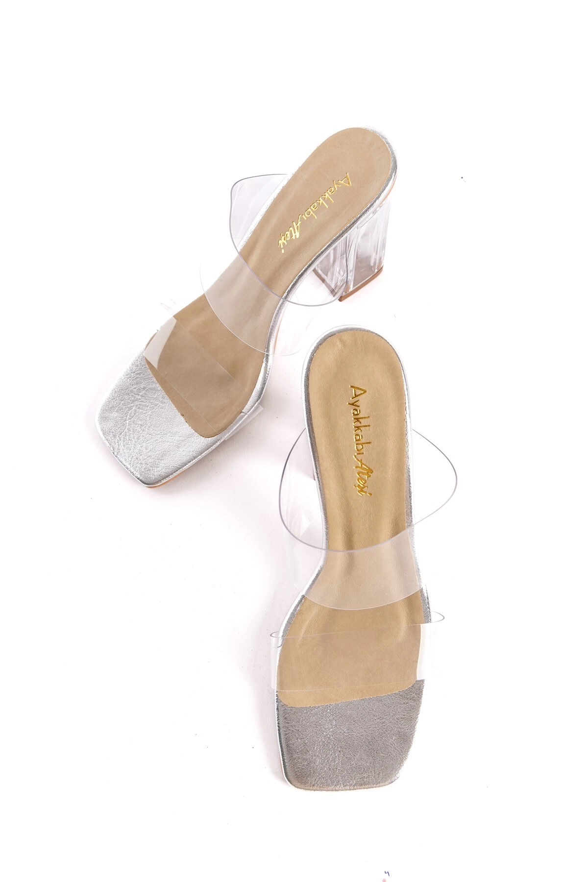 Kadın Moda Şeffaf Topuklu Terlik Şık ve Zarif Abiye Ayakkabı - Görsel 2