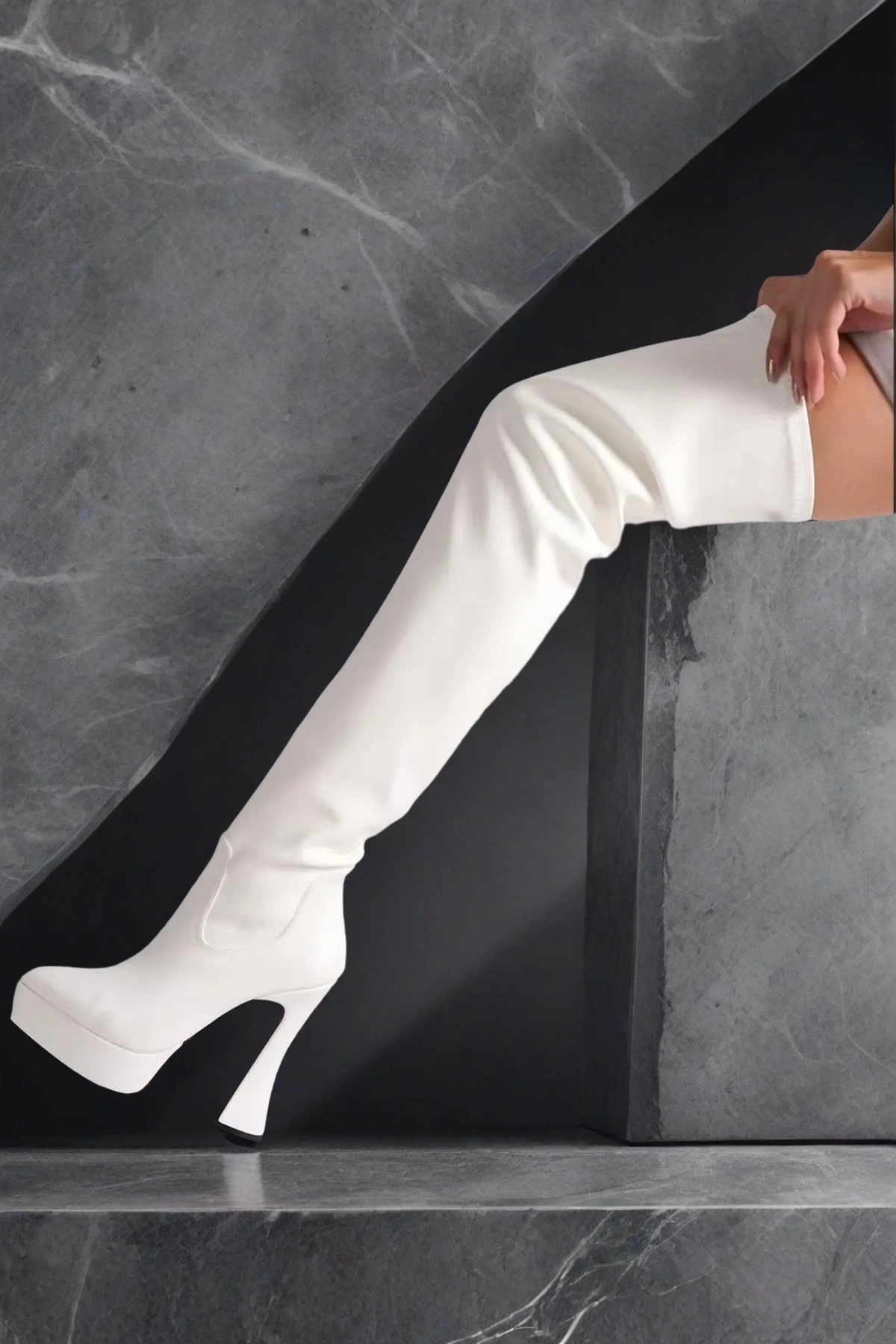 Kadın Moda Sivri Burun Platform Diz Üstü Streç Çizme Şık ve Zarif Abiye Ayakkabı