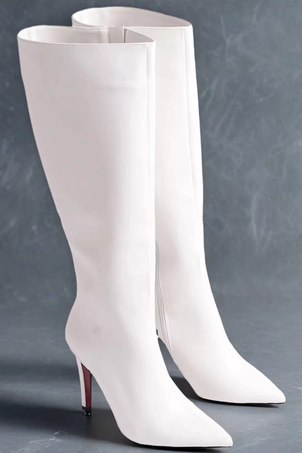 Kadın Moda Sivri Burun Yüksek Topuklu Diz Altı Çizme Şık ve Zarif Abiye Ayakkabı - Görsel 4